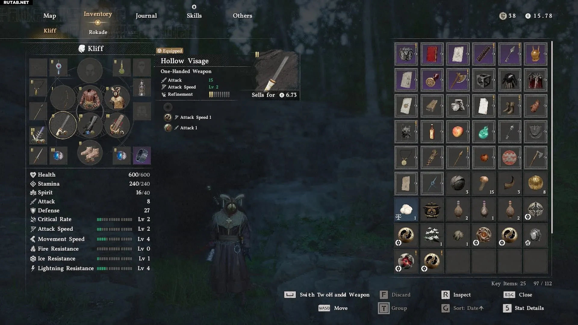 «Пустая Личина» имеет три предустановленные «Бездонные шестерни», повышающие атаку, скорость атаки и шанс критического удара. Это очень достойное одноручное оружие для ранней игры, которое станет еще лучше после улучшения. Помните, что шестерни можно добавлять или удалять, посещая ведьм в их убежищах. Рекомендуется заменить шестерню на шанс критического удара на дополнительную плоскую атаку или шестерню со специальным эффектом, например, с «Меча Повелителя», который падает с «Рогорассекателя».