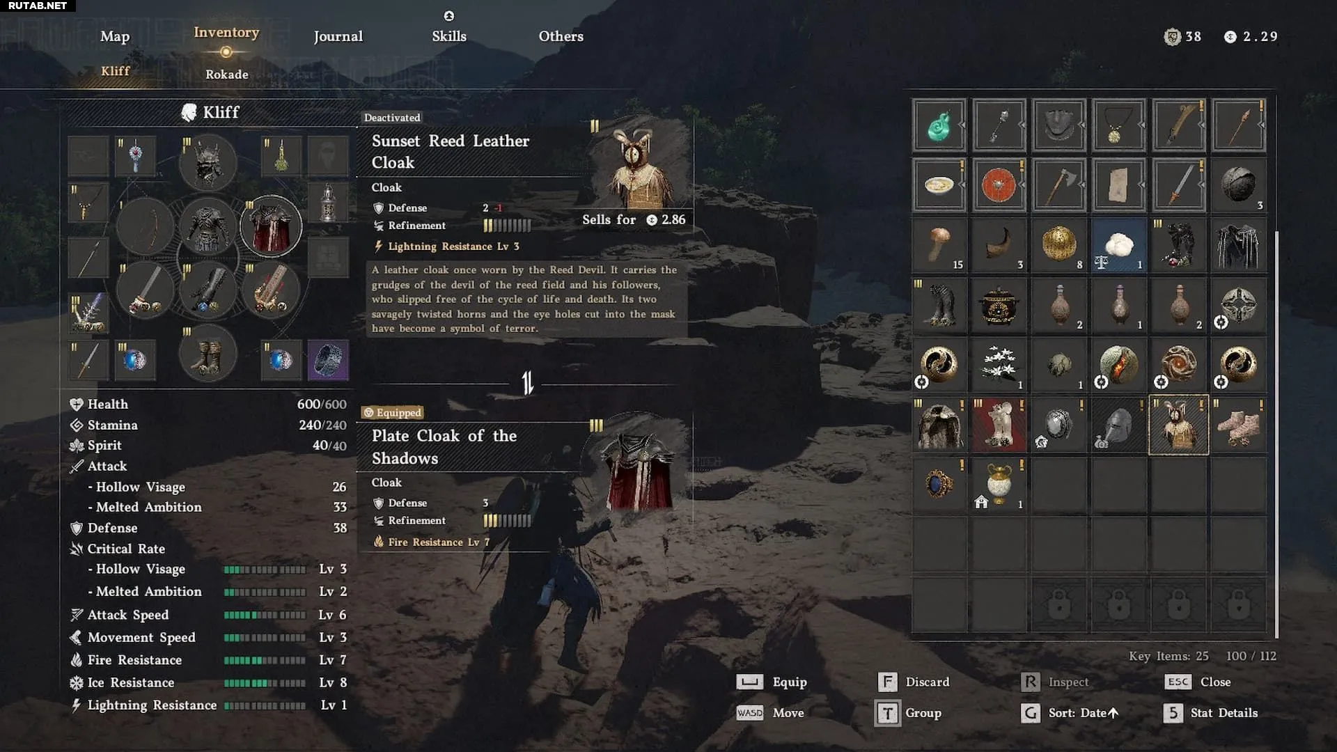 Плащ Дьявола Тростника (и соответствующая корзинообразная шляпа) находится внутри неотмеченных руин к западу от Шпиля Прозрения. Внутри руин вы найдете запертую решеткой дверь с сундуком за ней. Чтобы открыть ворота, зажгите два жаровня у лестницы.