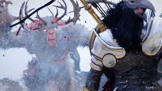 - Используйте прием «Удар» (R1+Треугольник), чтобы вонзить меч в деревянную колонну.