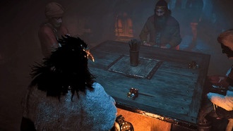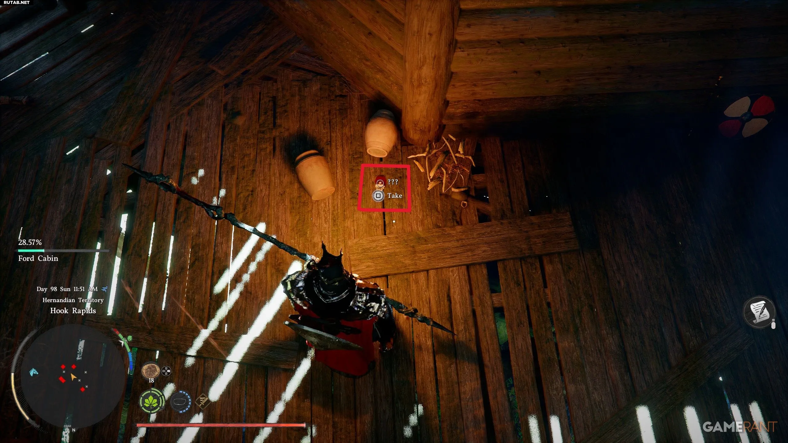 - Поднимитесь по лестнице внутри хижины, и вы увидите на столе флакон с надписью «???». Когда вы подберете этот предмет, он попадет в ваш инвентарь как «Темно-красная краска», но на самом деле это Черная краска.