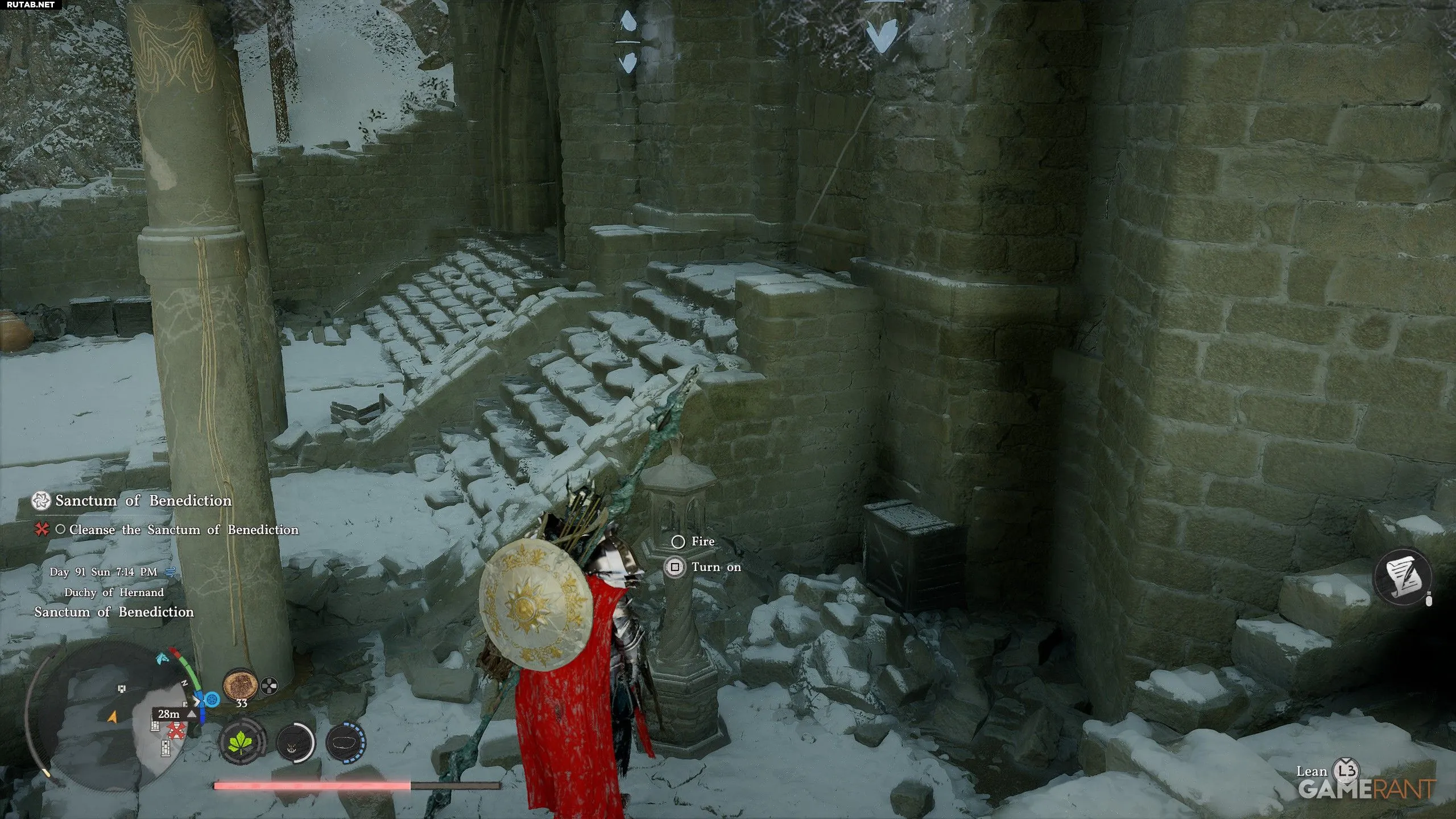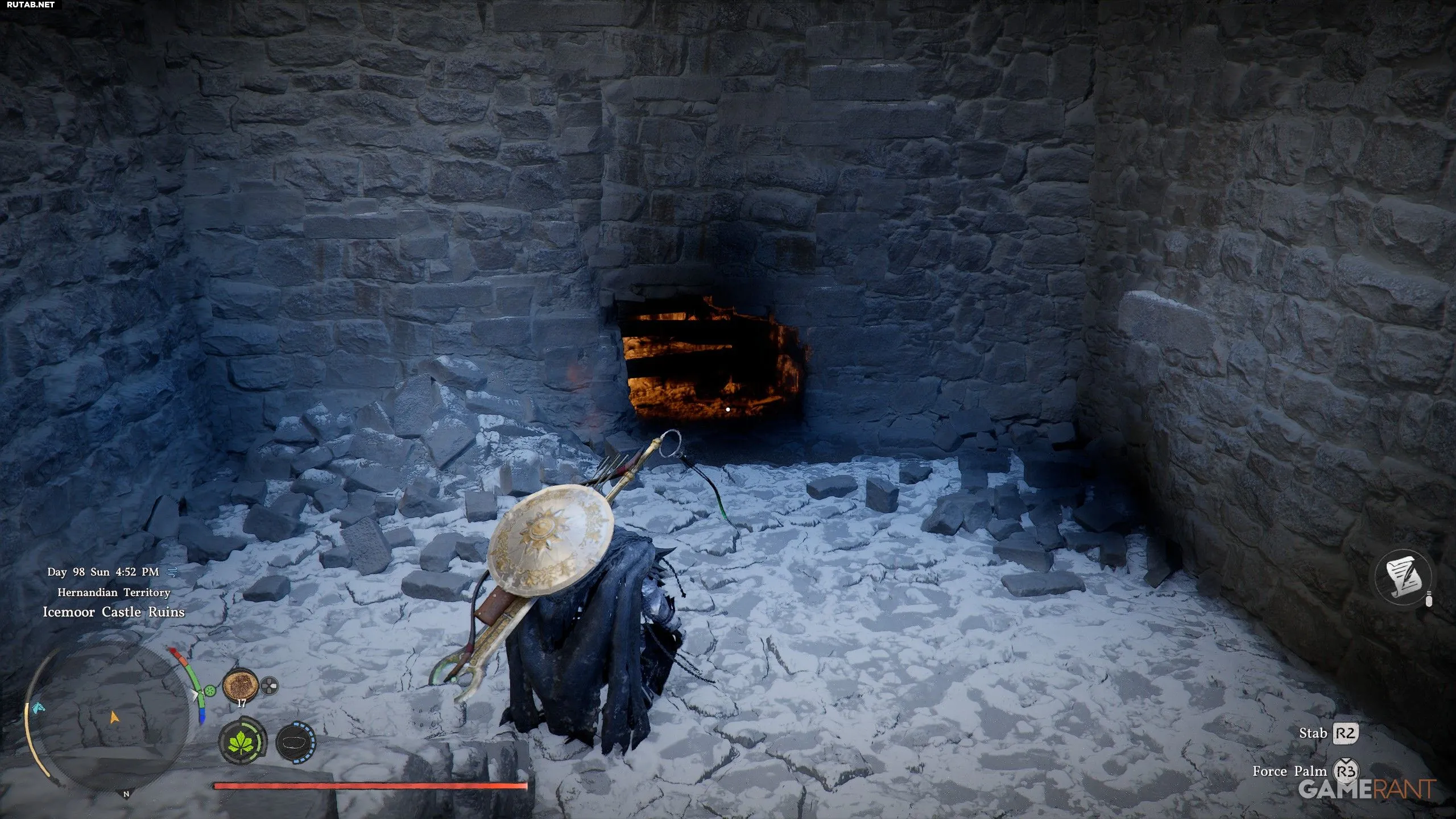 - В руинах идите на север, поднимитесь по лестнице, сверните направо через мост и пройдите к задней части замка.