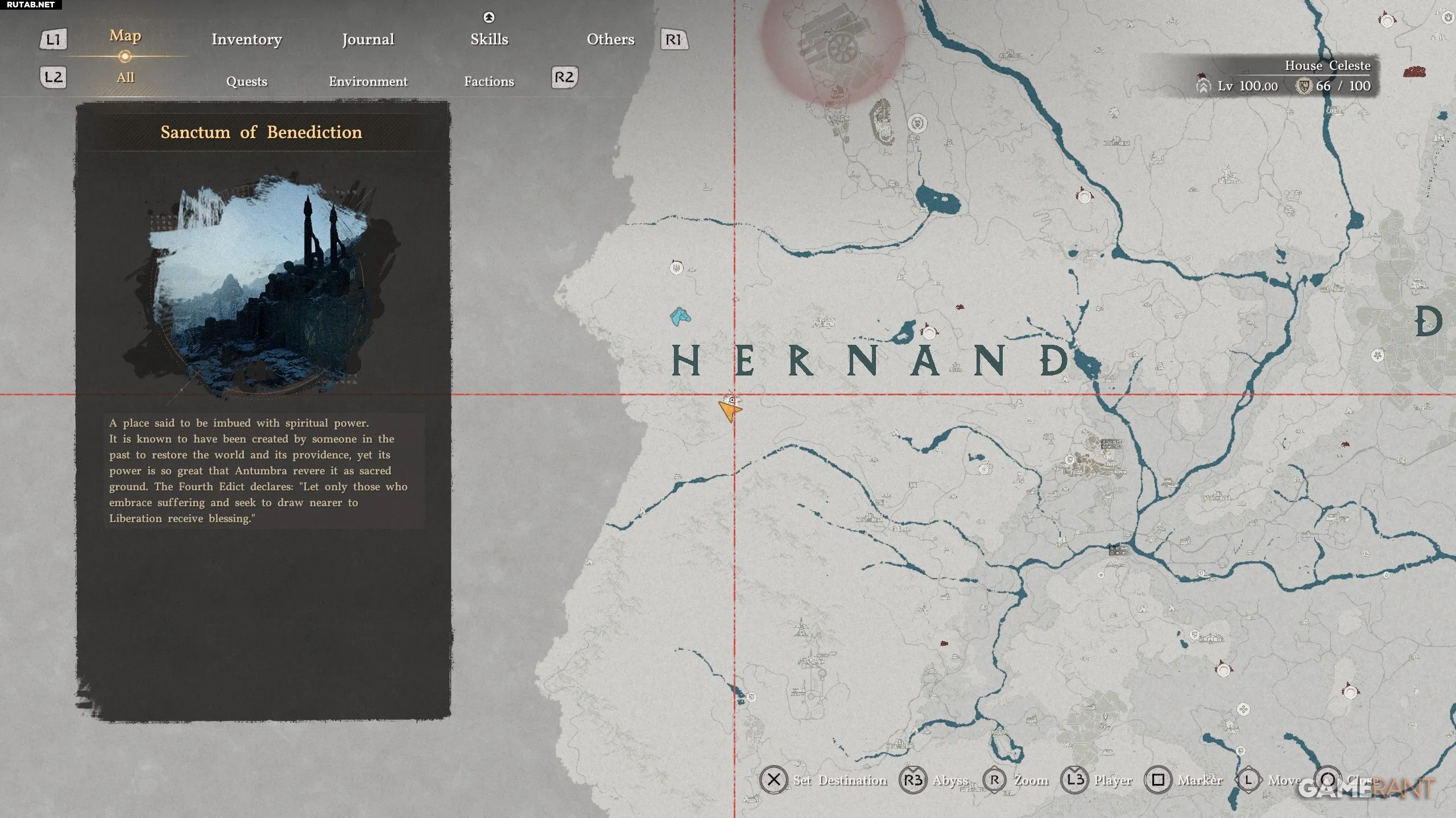 - Местоположение: Святилище Благословения, к югу от буквы «E» в названии «Hernand» на карте.