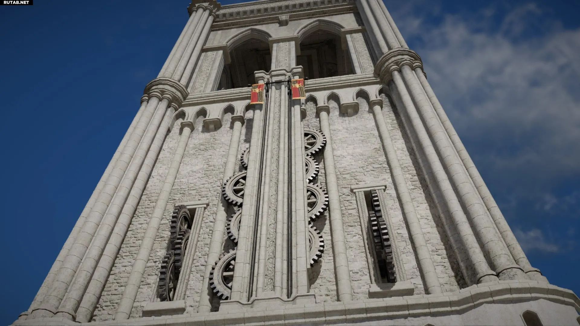 Когда вы окажетесь перед башней, посмотрите вверх. Вы увидите, что ближе к вершине расположены внешние шестерни. Прямо над ними находятся два флага. Вот туда вам и нужно забраться. Добравшись до уровня шестерен, рекомендуем остановиться на уступе, чтобы восстановить выносливость перед последним рывком.