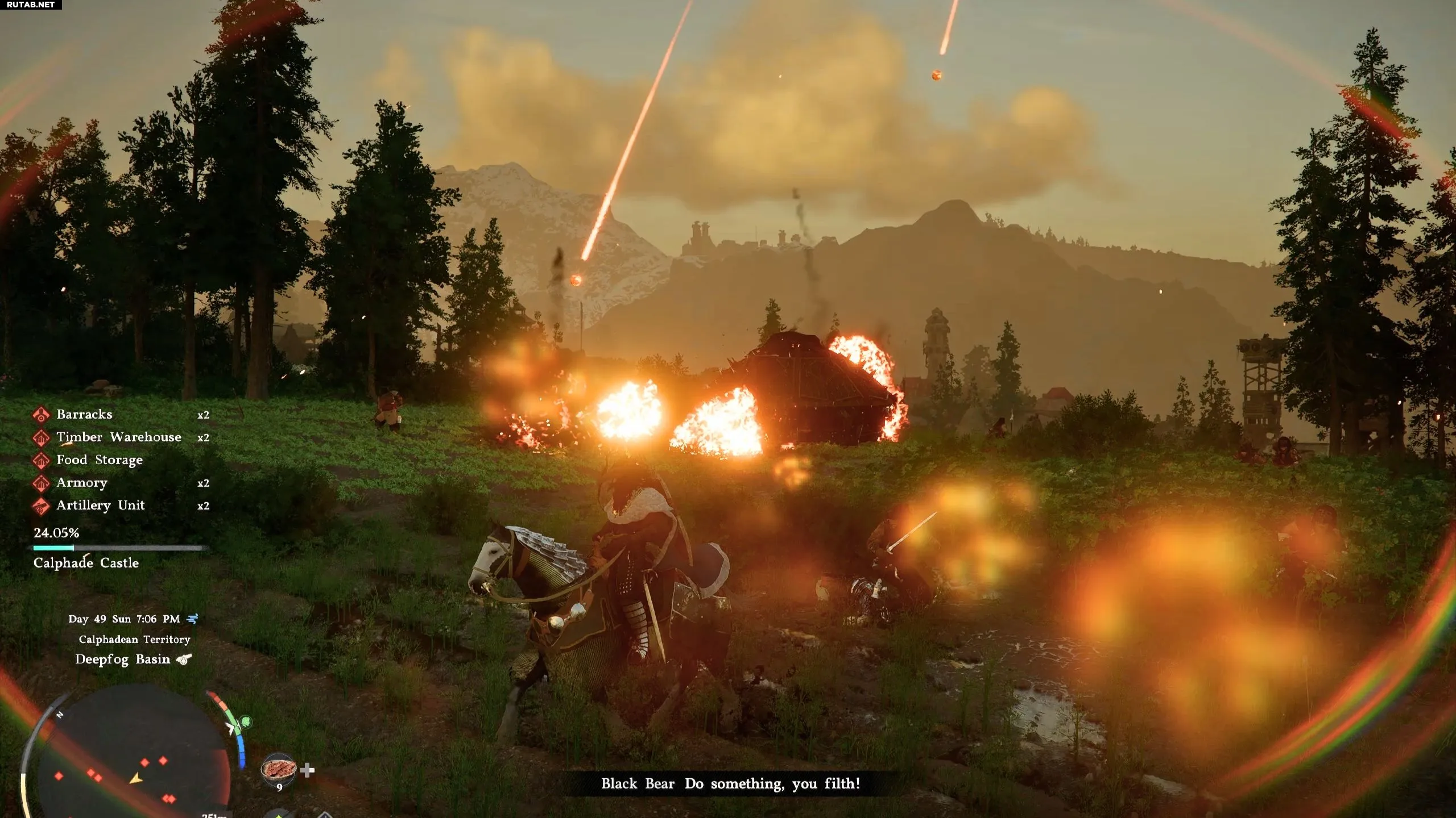 Обнаружив боевую машину «Чёрных Медведей», наведитесь на неё с лука, используя режим прицеливания. Это вызовет артиллерийский обстрел цели, который уничтожит машину за один раз. Обыщите территорию, чтобы найти и уничтожить пять таких танков для выполнения цели квеста.