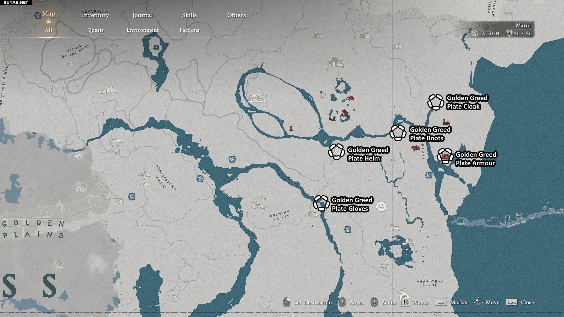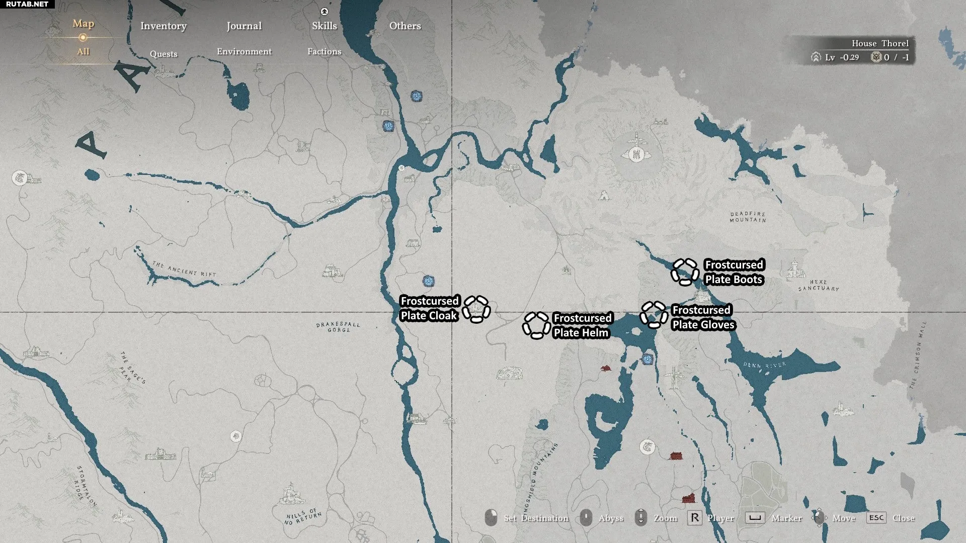 - Местоположение: Все части комплекта разбросаны по северной части Деменисса, как показано на карте ниже.