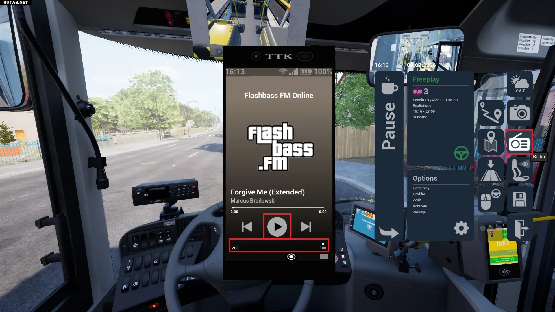 Включите радио (через меню ESC) и выберите станцию Flashbass.FM.
