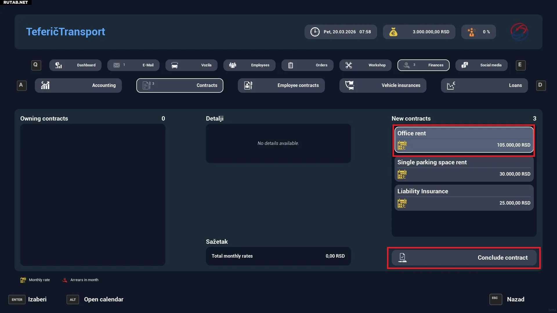 Подпишите контракт «Аренда офиса» в режиме «Экономика».