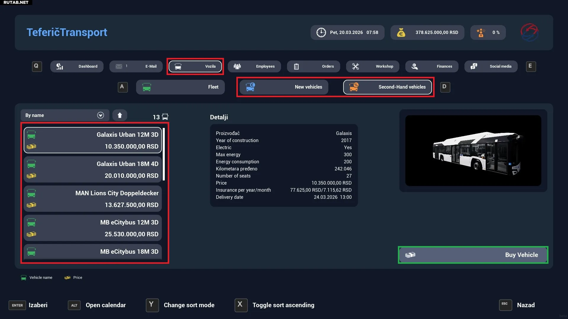 Режим «Экономика». Купите любое транспортное средство для своего парка.