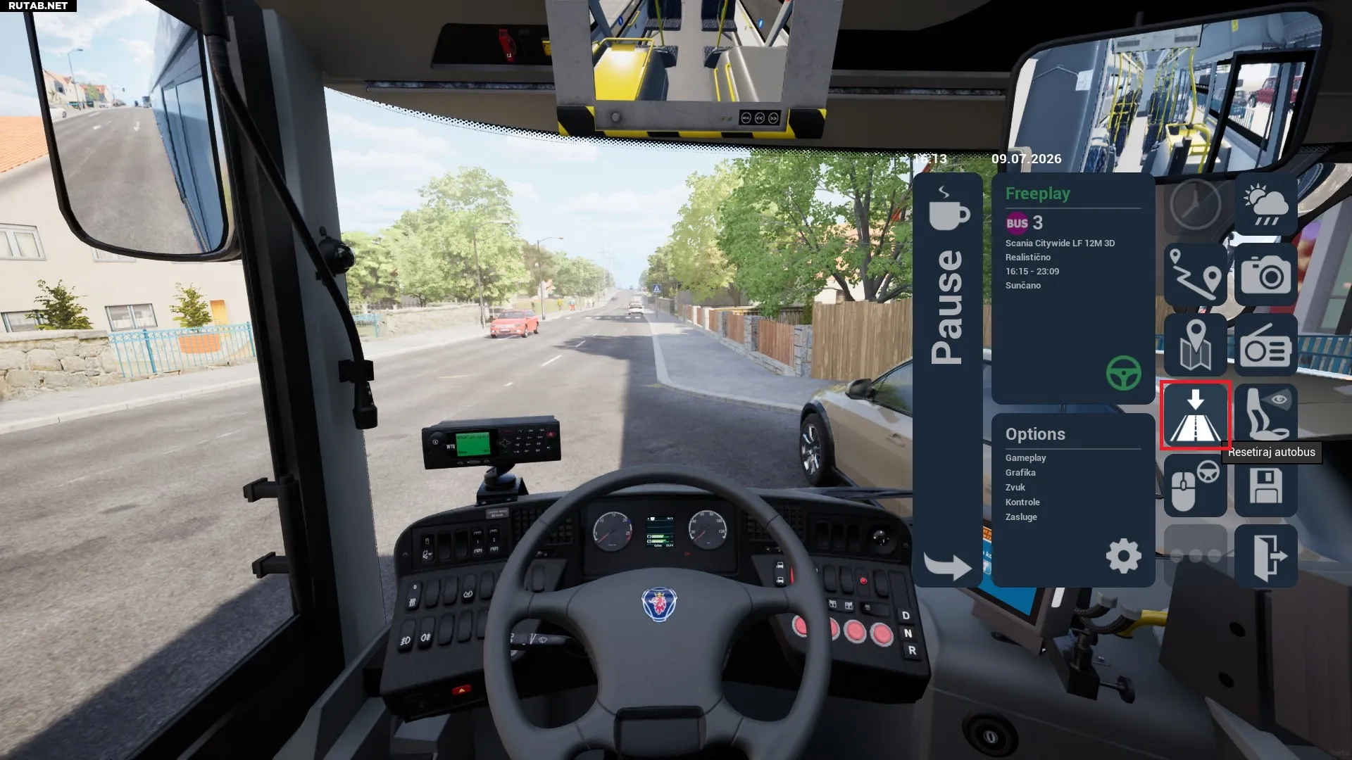 Используйте кнопку для возврата автобуса на дорогу 500 раз.