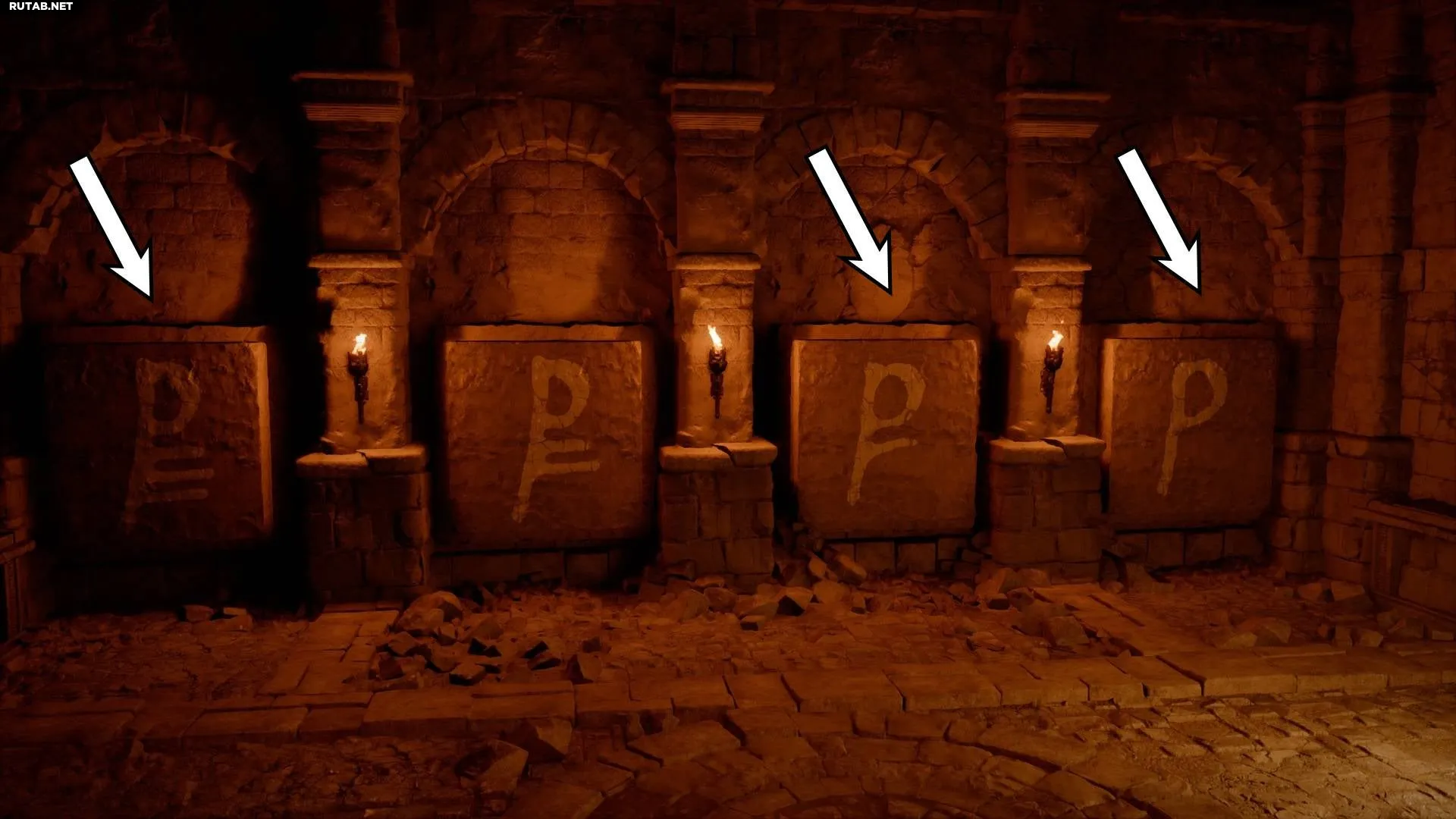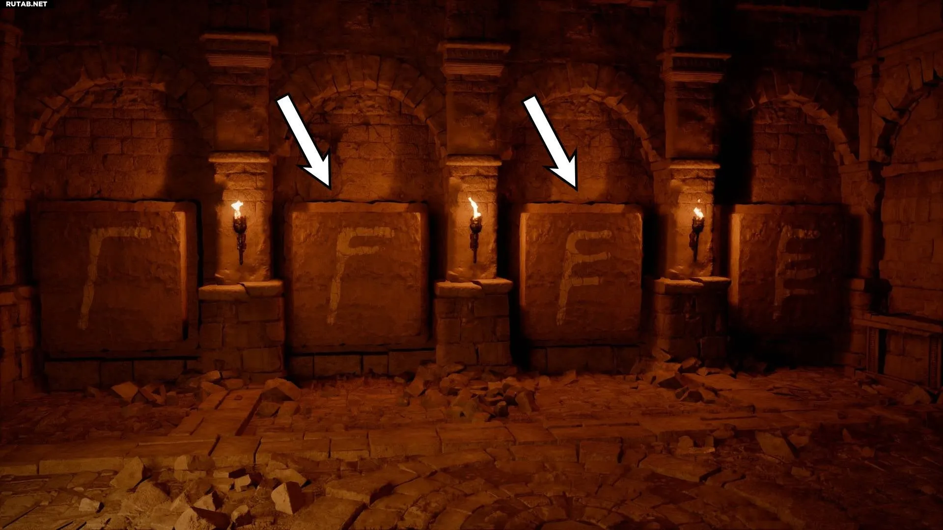 В конце пещеры вас ждёт комната с восемью каменными блоками, на которых высечены различные символы, напоминающие буквы. Цель — ударить способностью «Фокусирующая длань» по пяти определённым блокам в любом порядке. Символы, которые нужно активировать, можно узнать, выполнив побочный квест «Недостижимая деревня», карта к которому висит на стене прямо перед залом с головоломкой.