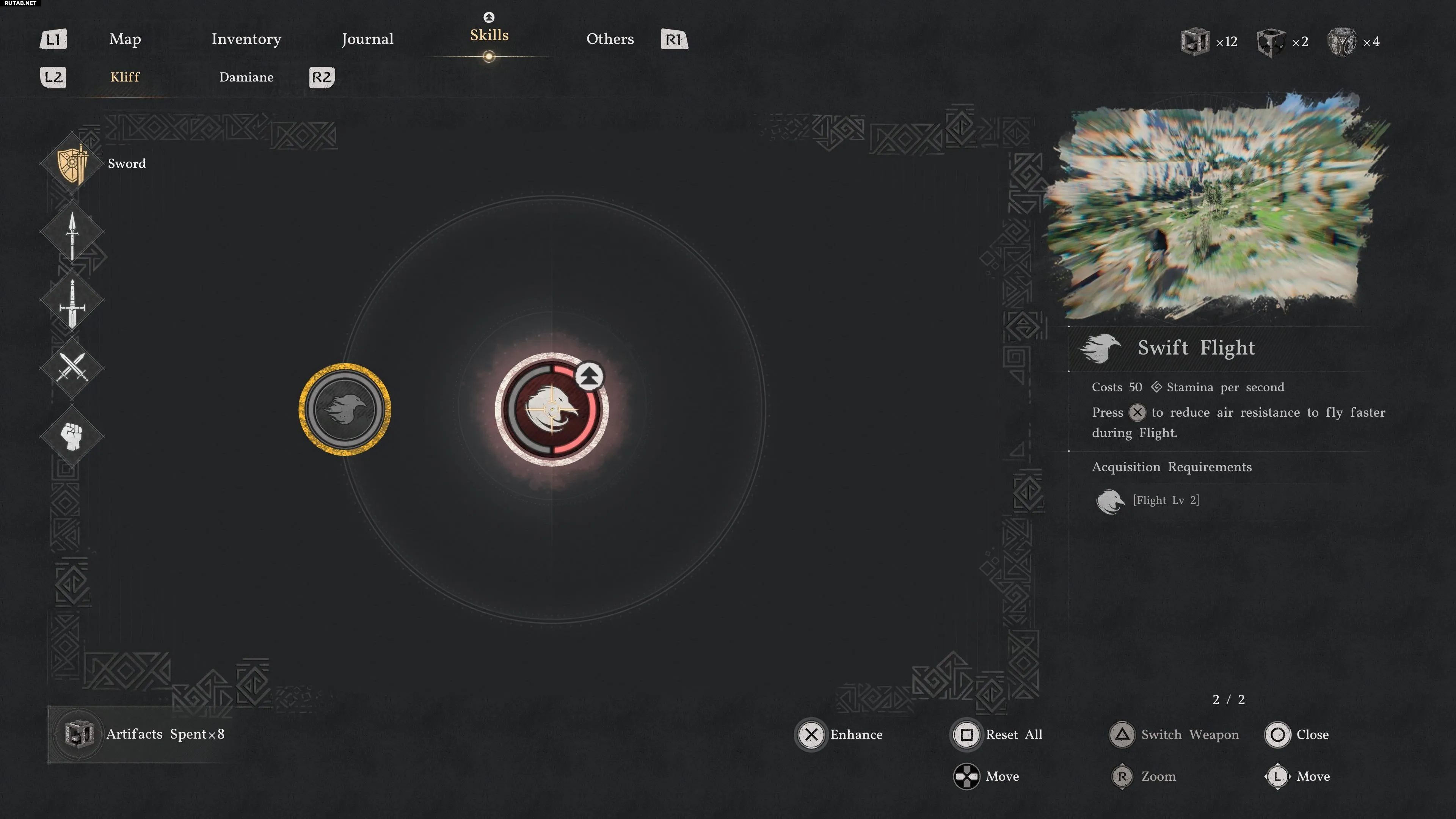 Для его разблокировки достаточно потратить всего один Артефакт Бездны, чтобы повысить узел Полёт до 2-го уровня. Это необходимое улучшение, если вы хотите преодолевать большее расстояние в полёте или просто перелетать через пропасти, не карабкаясь обратно по стене. Сочетайте его с улучшениями выносливости, чтобы по-настоящему расправить крылья.