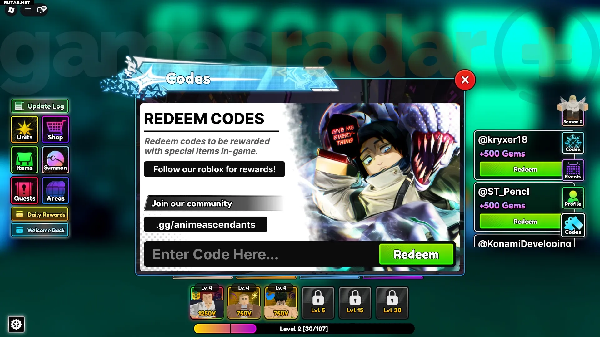 Все рабочие коды Anime Ascendants