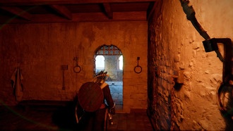 С книгой в руках спуститесь вниз и идите прямо к книжному шкафу рядом с картиной барана. Посмотрите в его правый верхний угол и поместите туда книгу. Теперь откройте шкаф и спуститесь через отверстие в полу в кладовую. Меч Акрии лежит на стойке в углу рядом с двумя стульями.