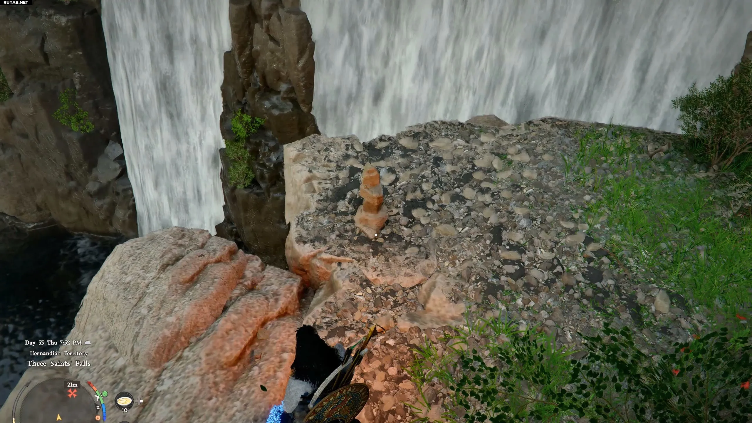 Добравшись до места, ищите плато с небольшой каменной формацией, указывающей на вход в пещеру. Подойдите к водопаду и выполните атаку с уколом (RB+Y / R1+Triangle / Left Shift+ЛКМ). Это позволит вашему персонажу, Клиффу, пройти сквозь водяную стену внутрь пещеры.