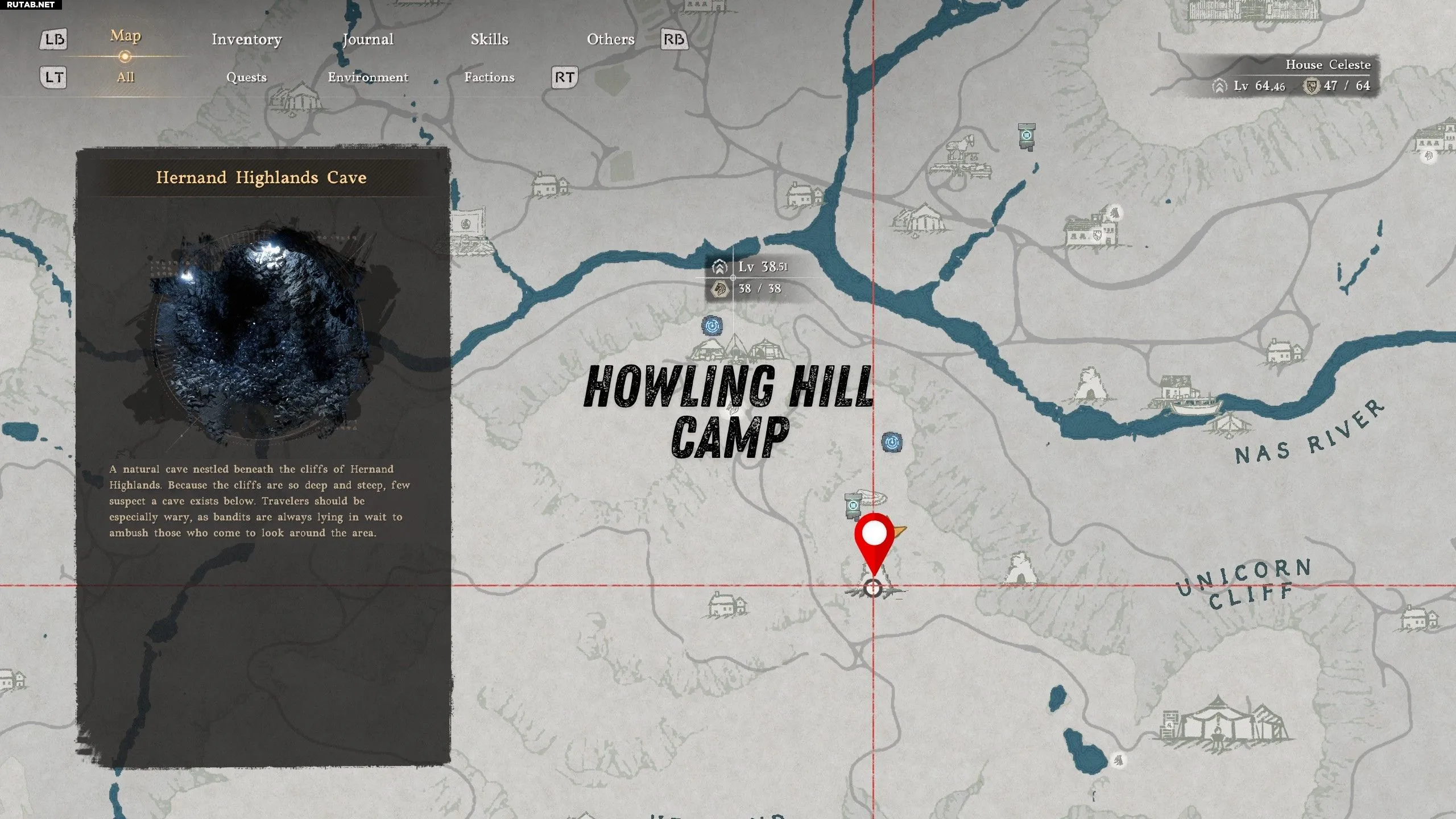 Пещеру с алмазами можно обнаружить на раннем этапе игры, к югу от лагеря «Воющих холмов» клана Серогривых. Алмазы находятся внутри Пещеры нагорья Хернанда, расположенной к югу от лагеря в огромной воронке. Это та же самая воронка, где вы решали головоломку «Покои Драконьего камня», чтобы активировать точку быстрого перемещения «Бездонный светоч».