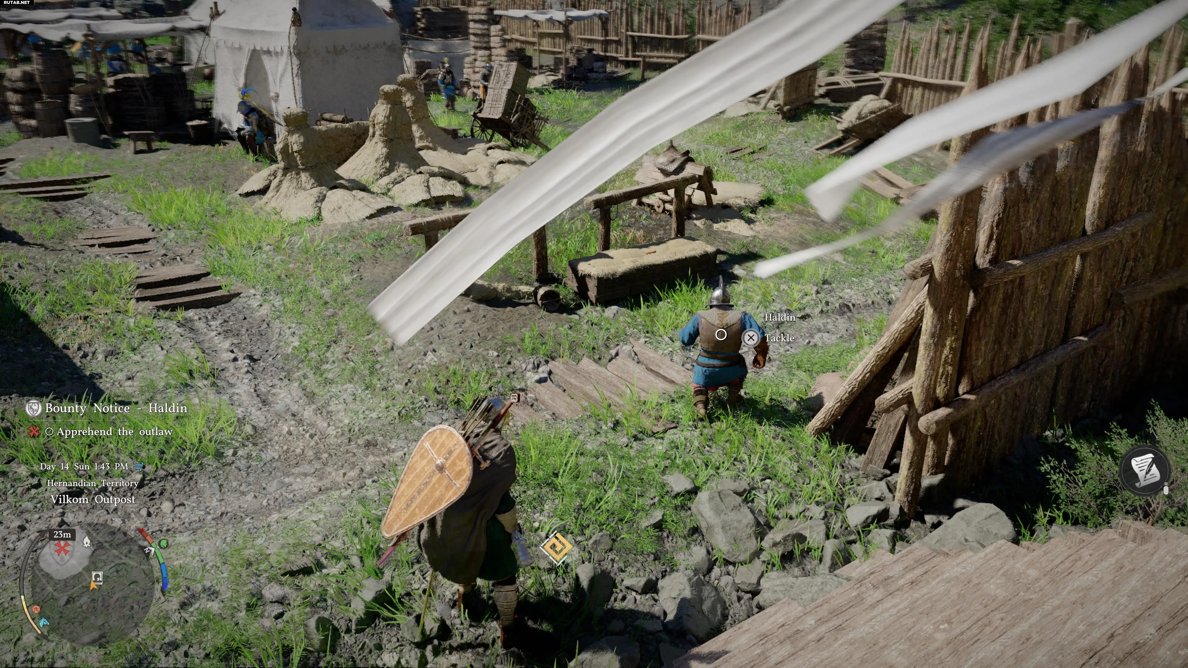 В отличие от других целей, объявление о розыске Халдина не появится в мире, пока аванпост Вилком, где он скрывается, не будет освобожден от бандитов «Волчьи следопыты».
