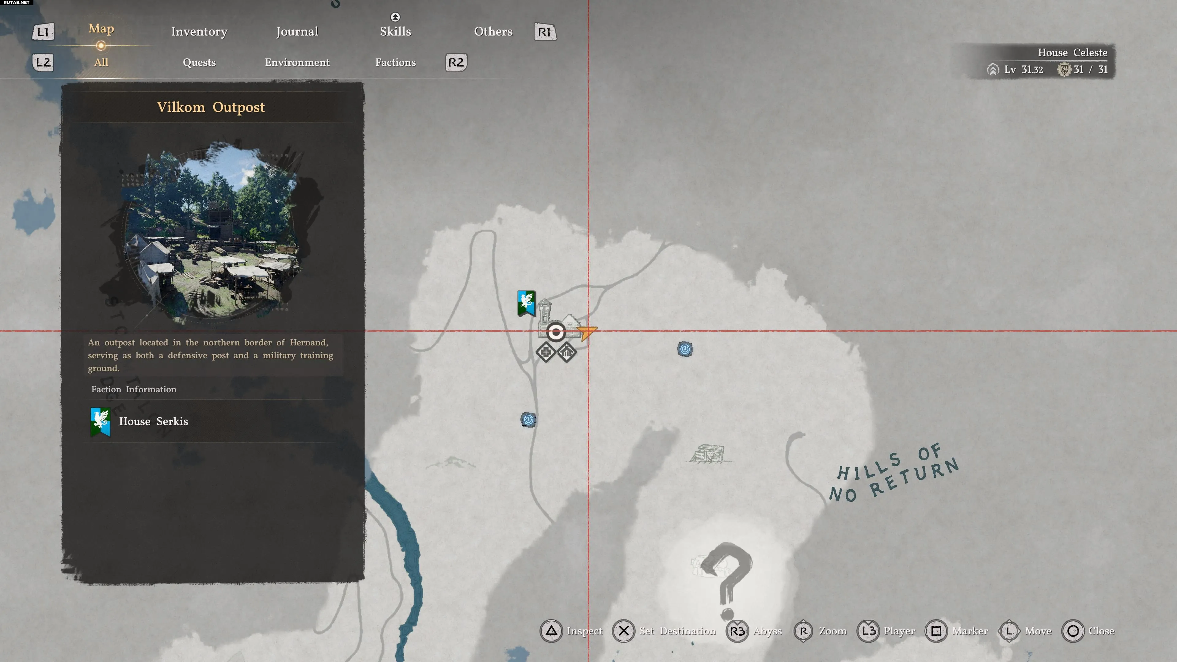 - Аванпост расположен к северо-востоку от города Хернанд, рядом с Холмами невозвращения. Рядом есть две точки быстрого перемещения — активируйте хотя бы одну из них.