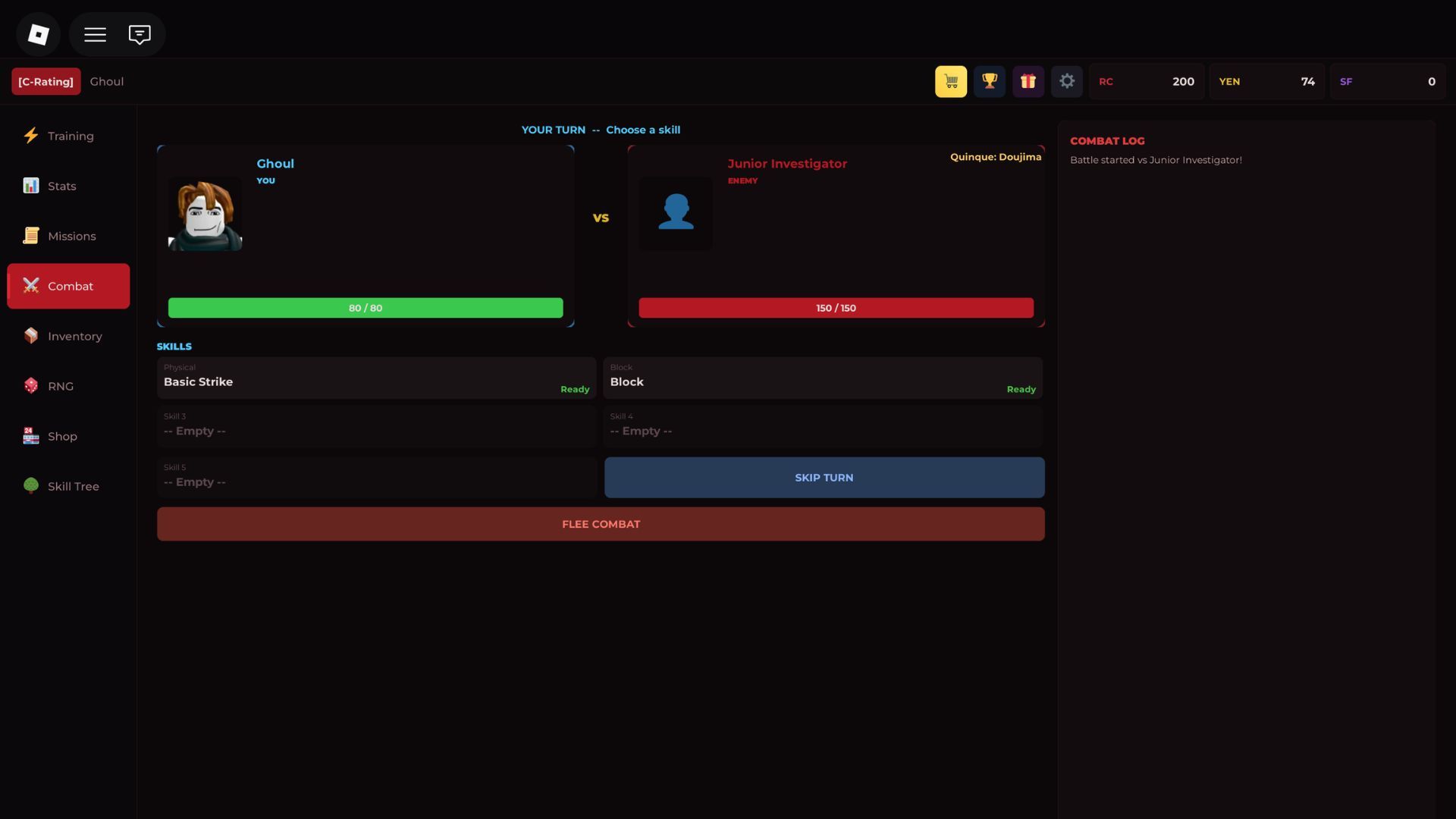 - Запустите игру Ghoul Incremental в Roblox.