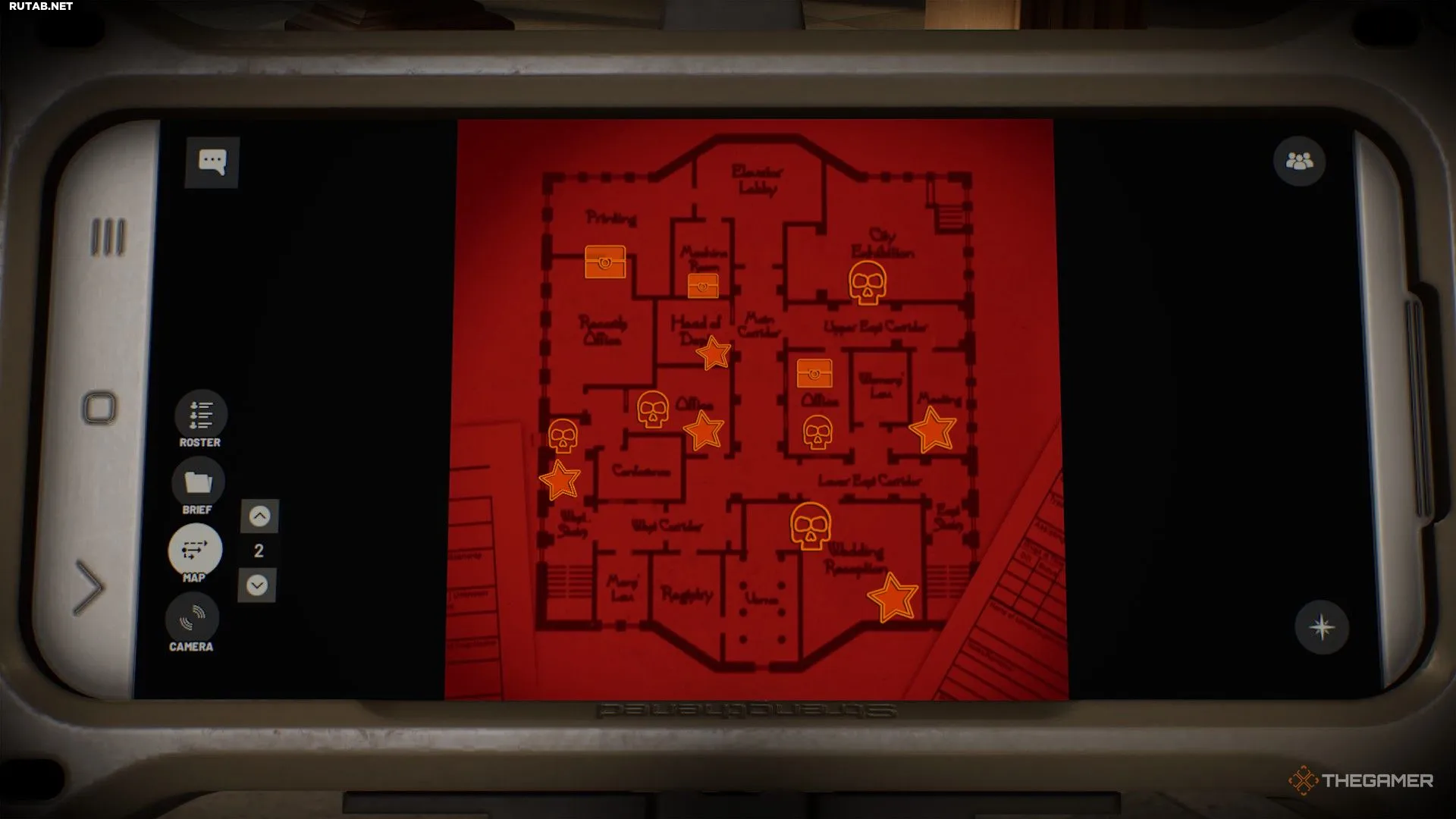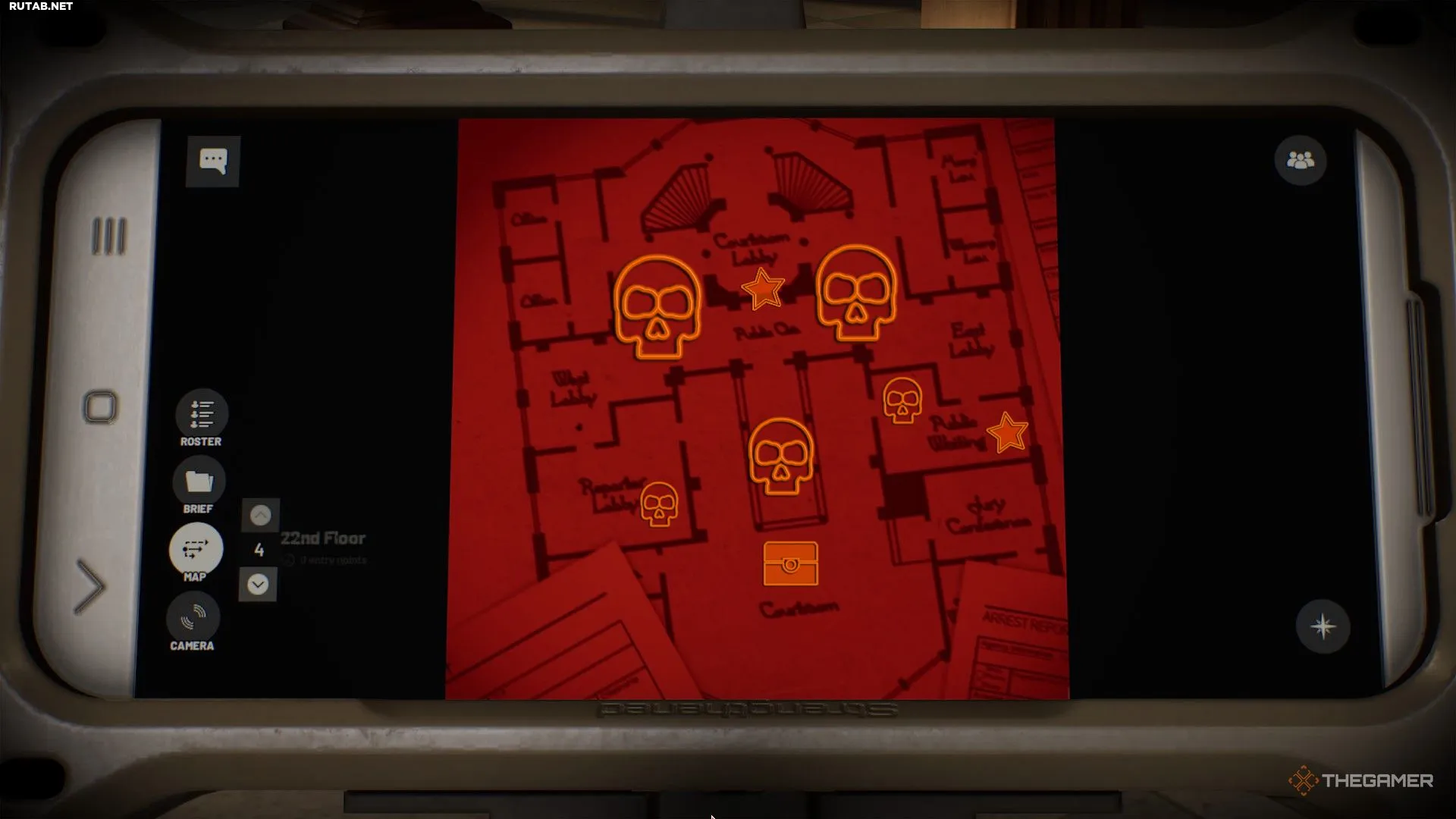 Мы отметили карты 20-го, 21-го и 22-го этажей символами, чтобы обозначить ключевые точки и цели. Черепа обозначают подозреваемых, звезды — гражданских, а сундуки — второстепенные цели, VIP-подозреваемого и интерактивные объекты.