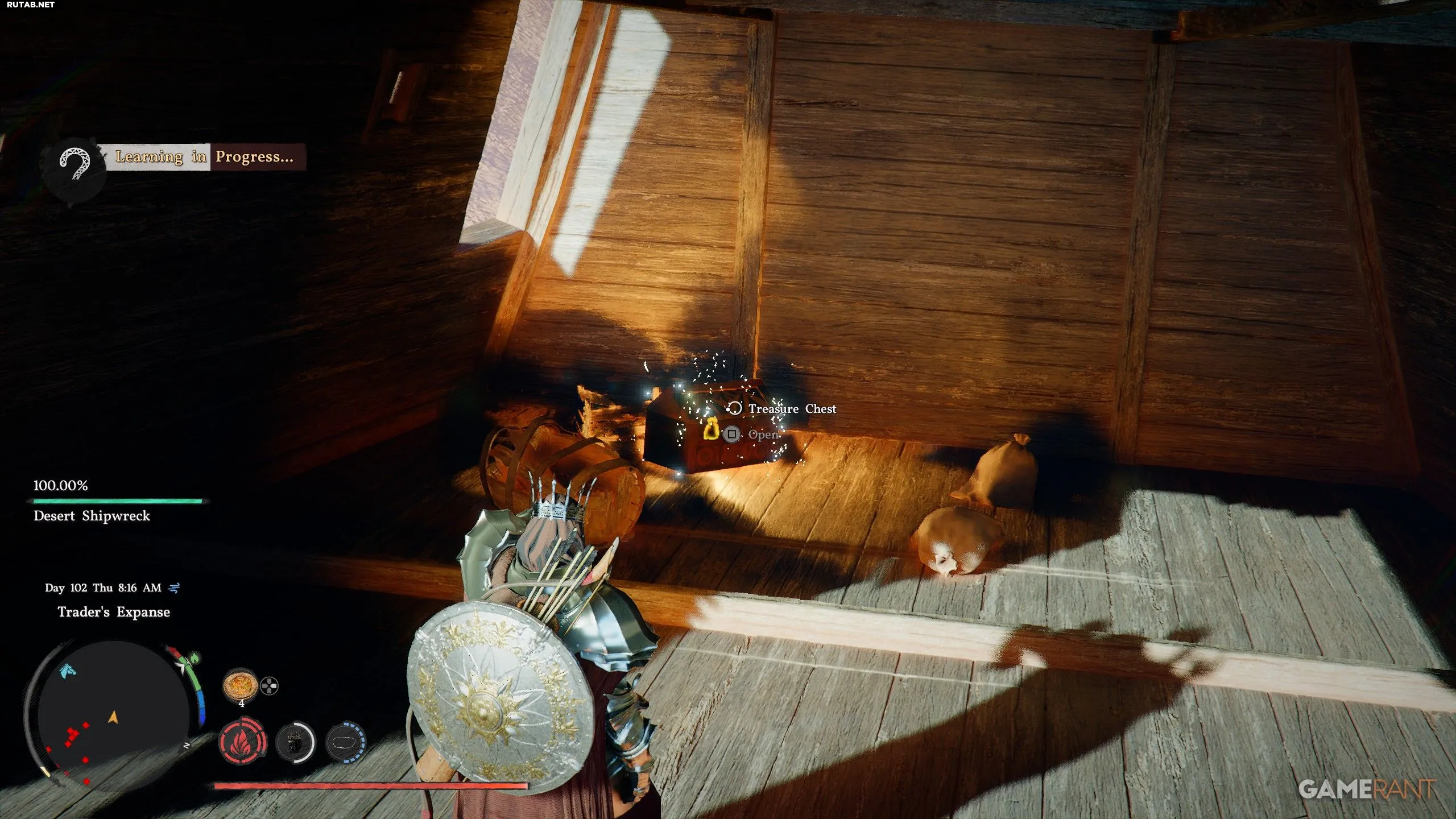 - Местоположение: Внутри кораблекрушения в Просторе торговца, к северу от Багровой пустыни.