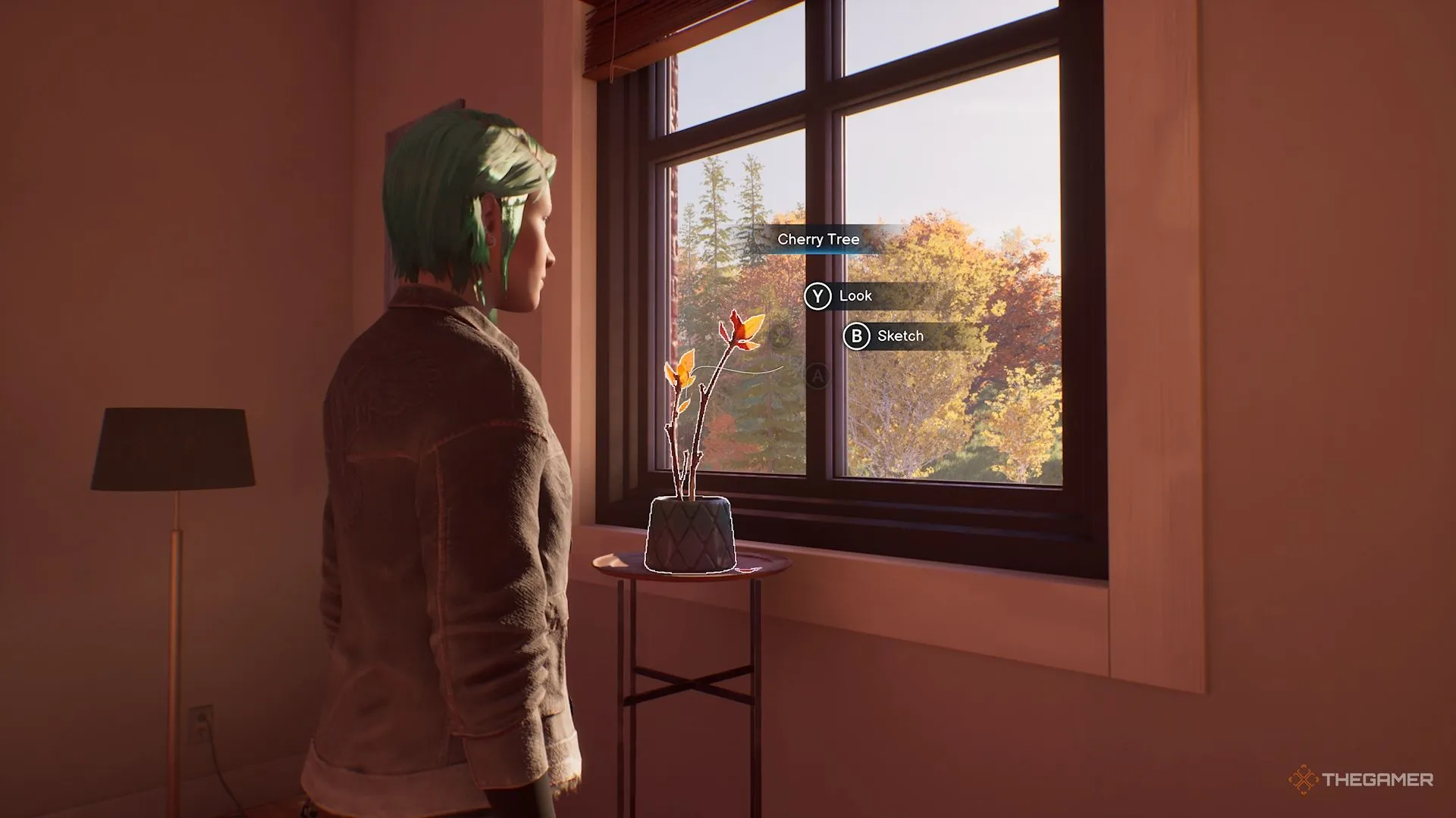 Как только у вас появится возможность осмотреться в кабинете Мозеса, поднимитесь наверх. Рядом с верхней частью лестницы, у окна, вы найдёте вишнёвое дерево. Оно станет вдохновением для следующей зарисовки.