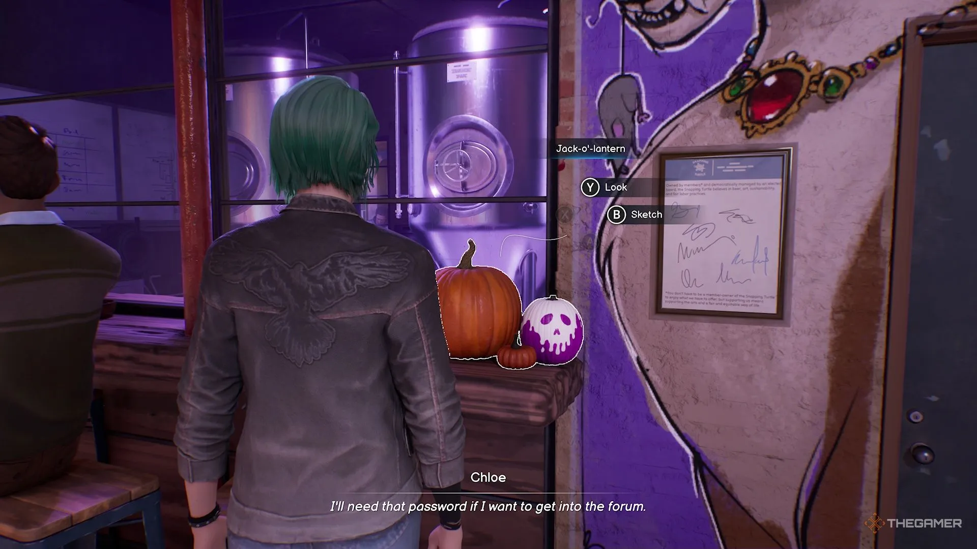 В сцене «Время в «Черепахе»» вы играете и за Хлою, и за Макс. На этапе за Хлою вы исследуете бар «Щелкающая черепаха». Подойдите к тыквам, которые стоят рядом с комнатой, где варят пиво. Светильник Джека (тыква) и станет источником вдохновения.