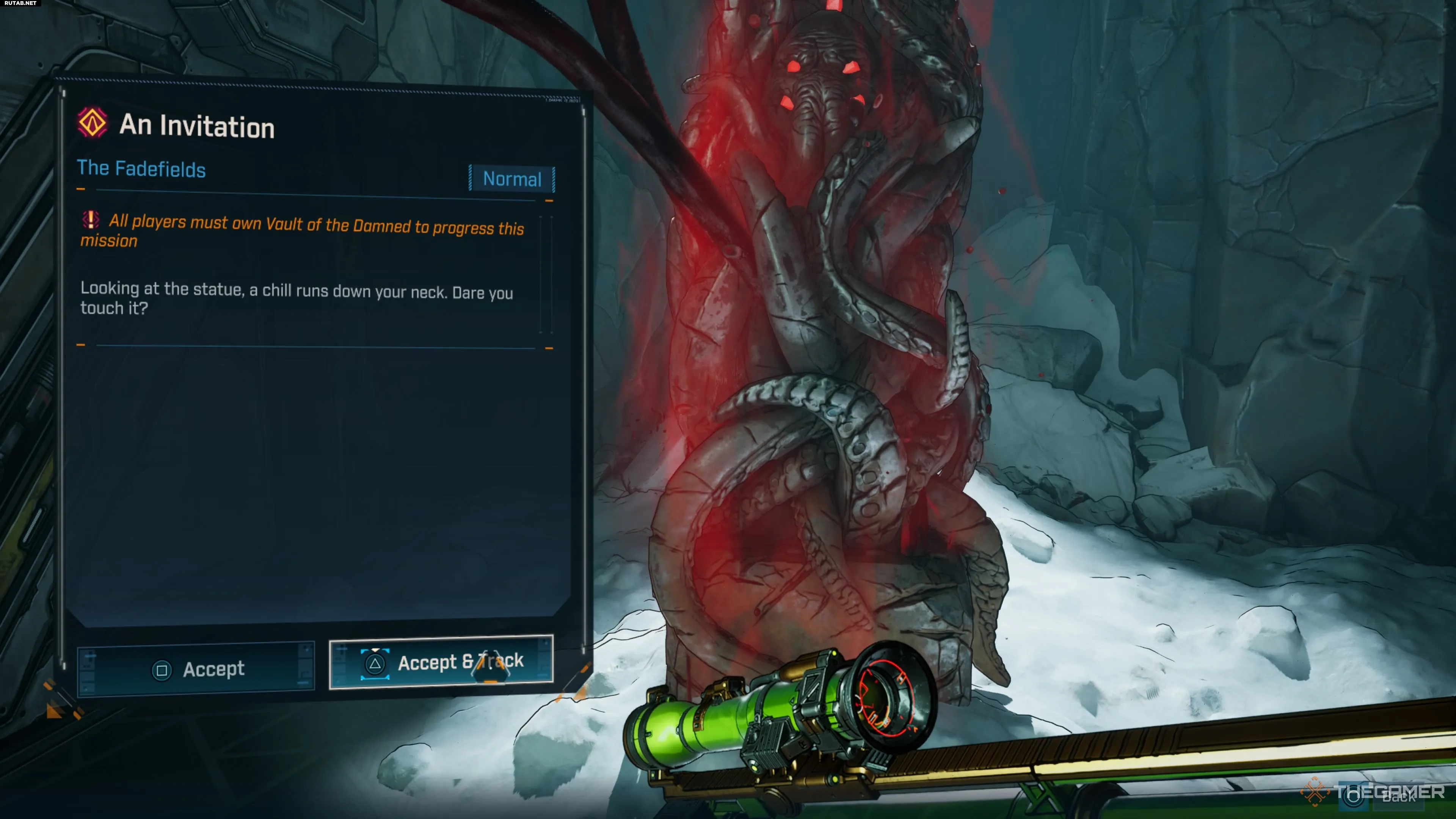 Это запустит сюжетную миссию «Приглашение». Повторное взаимодействие со статуей запустит короткую кат-сцену (ту же, что и при старте через отдельный тип игры). После этого вы будете телепортированы в новую локацию и автоматически начнёте миссию «На покинутых ледяных берегах», следующую в цепочке.