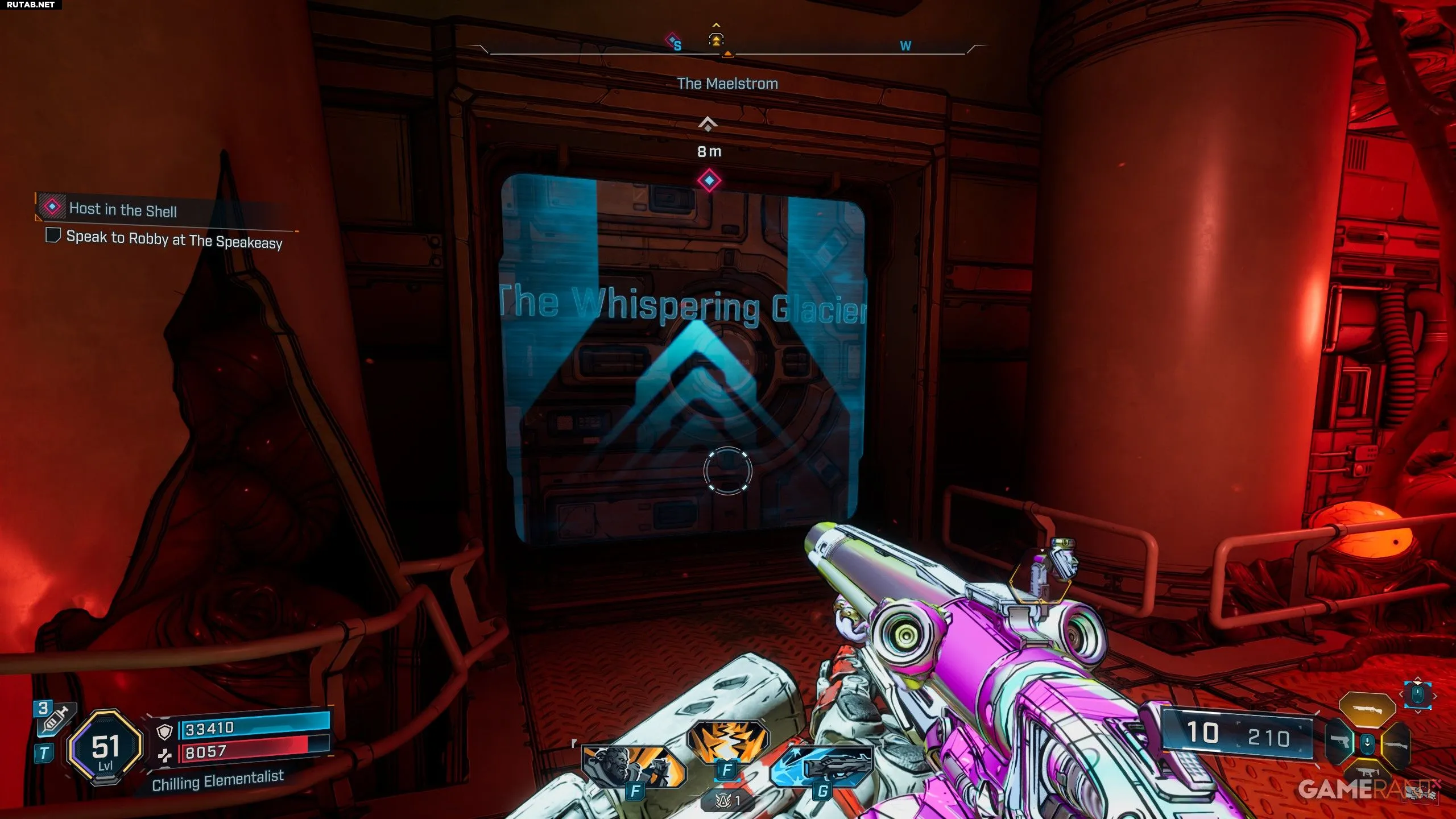 - Оказавшись в «Водовороте», развернитесь и используйте выходную дверь в «Шепчущий ледник».