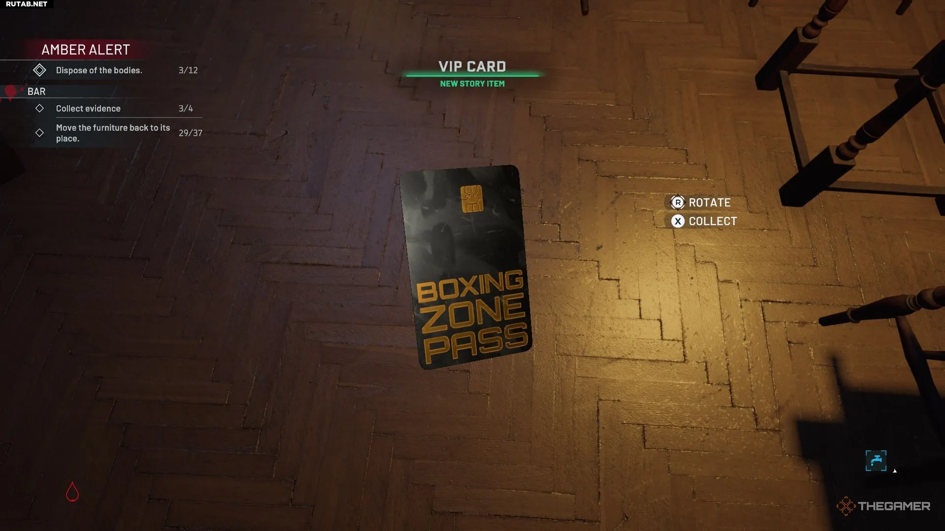 На верхнем уровне на полу лежит тело, под которым спрятана VIP-карта.