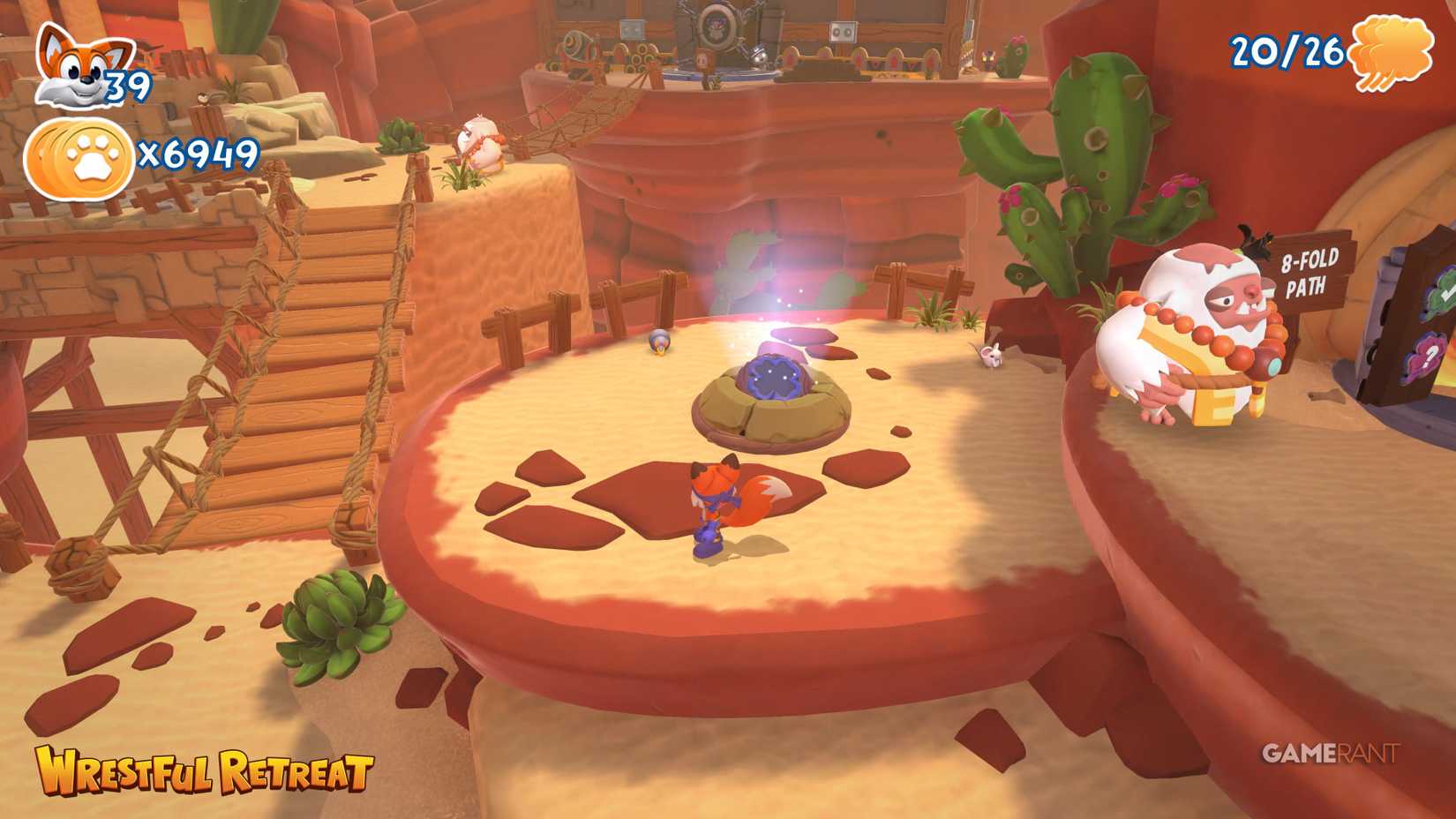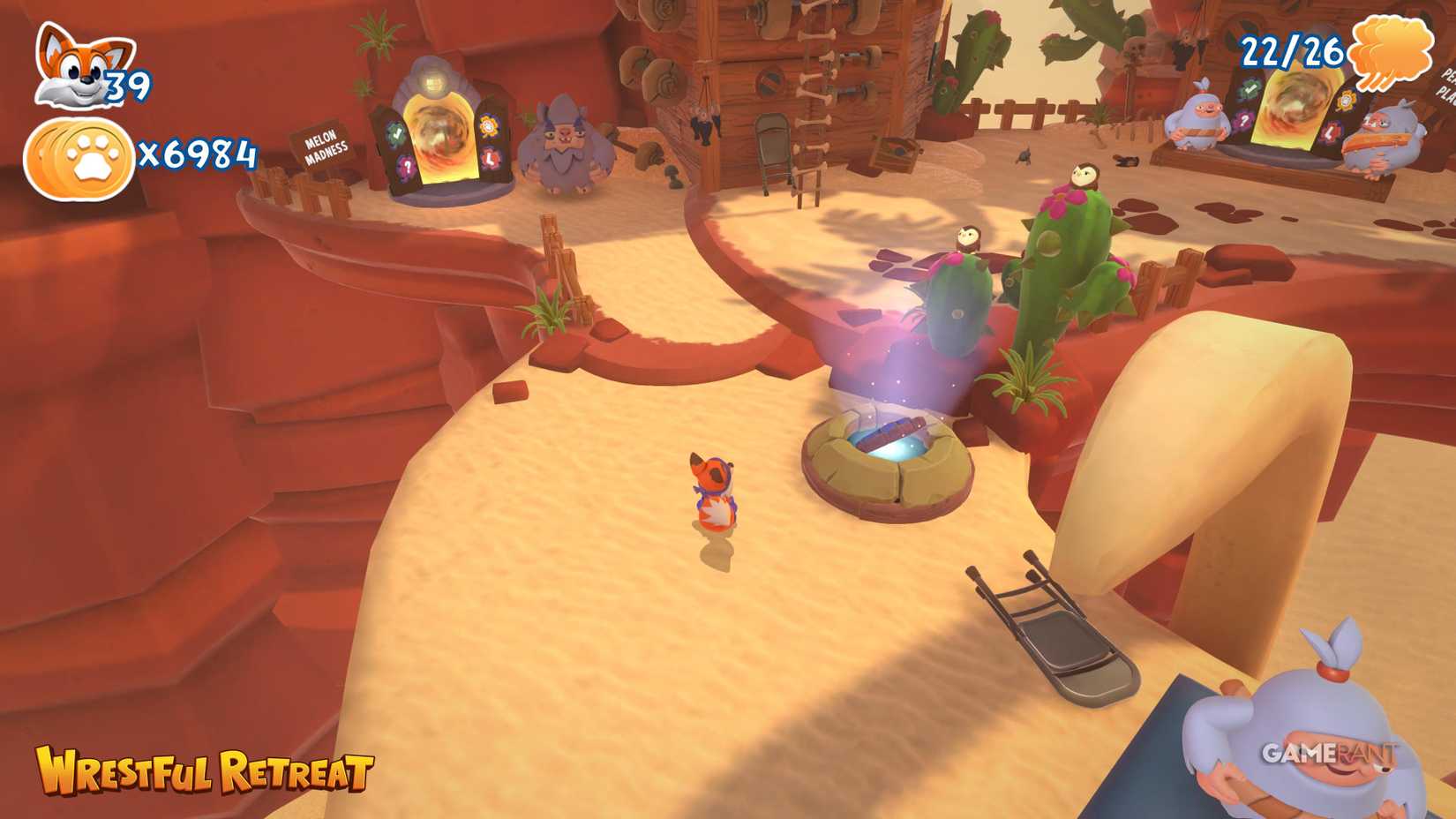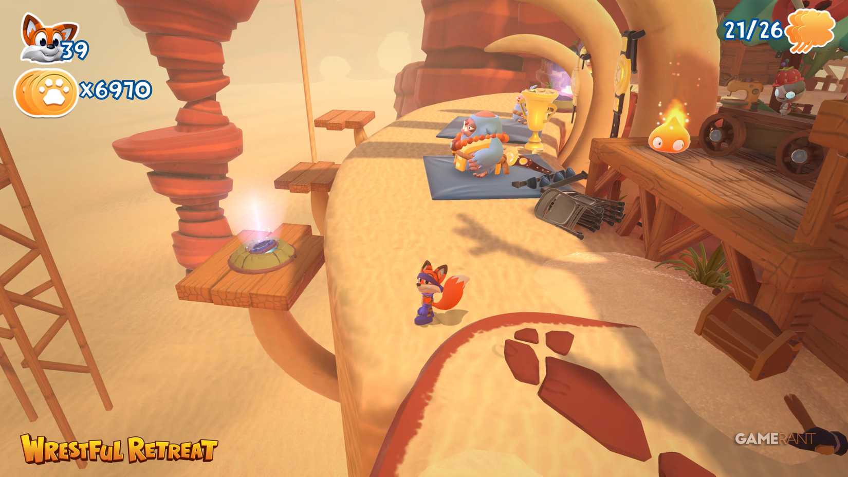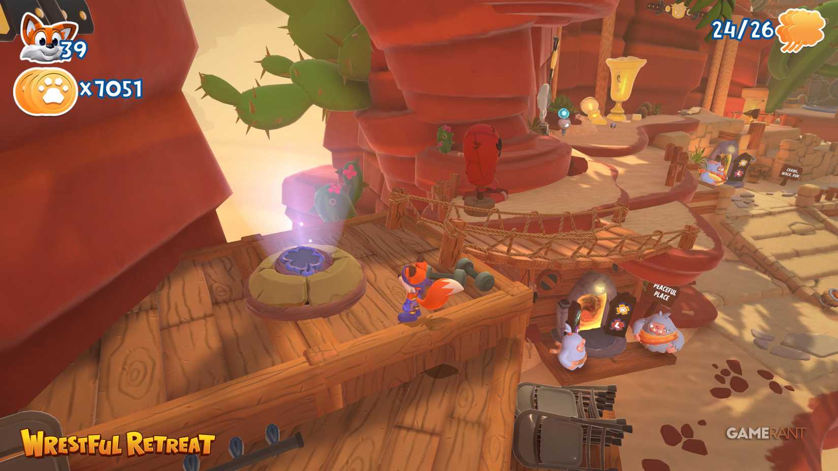 Wrestful Retreat — это третий мир в игре New Super Lucky's Tale, который включает в себя пять уровней и в общей сложности 30 коллекционных предметов. Также в хабе этого мира вам предстоит найти шесть головоломок со скользящими блоками, за решение каждой из которых даётся одна страница. Все их местоположения указаны в руководстве ниже.