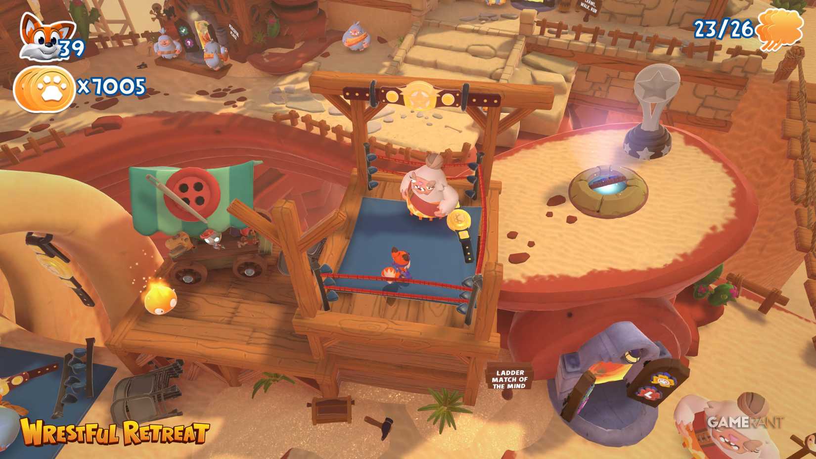 Сбор всех страниц в Wrestful Retreat открывает трофей или достижение R&R. Ни один из коллекционных предметов нельзя пропустить навсегда, так как игроки могут перепроходить уровни-платформеры и забрать всё, что упустили.