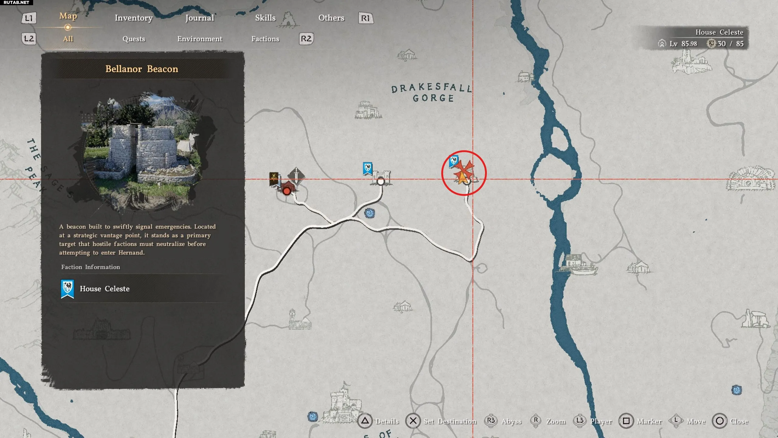 Спрятанную карту можно найти в лагере «Маяк Белланор», расположенном к югу от «Ущелья Дрейкфолл». Зайдите в палатку и возьмите бумагу со стола. На рисунке изображен водопад, за которым, судя по всему, скрывается вход в пещеру. На стене, которую нужно искать, нарисован зеленый лист.
