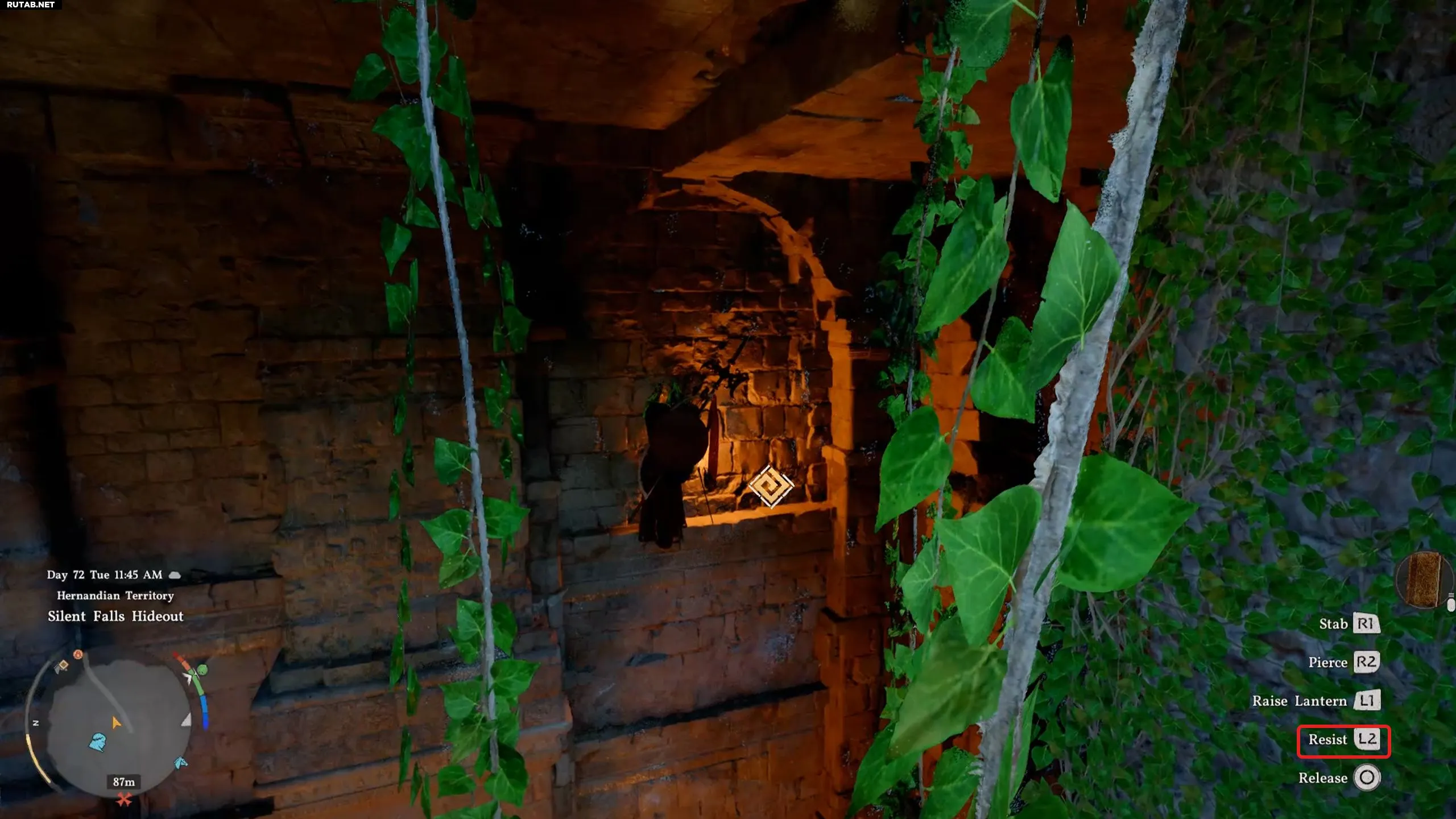 Взберитесь на стену и нажмите кнопку «Удержаться», чтобы прилипнуть к ней. Затем используйте «Ладонь Силы», чтобы повернуть стену и войти в потайное помещение (механика похожа на поиск седьмой части карты сокровищ).
