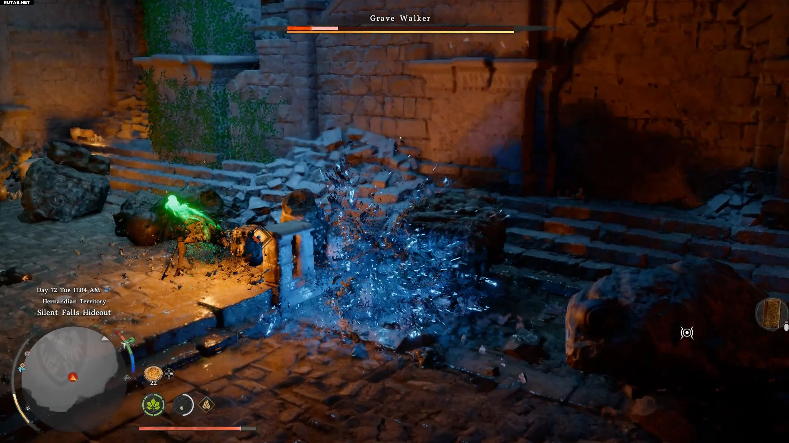 Grave Walker — не самый сложный противник, если знать его слабость. Атакуйте его, чтобы заполнить желтую шкалу оглушения, или используйте навык «Ладонь Силы». Когда он развалится на части, атакуйте эти фрагменты, чтобы нанести значительный урон и одержать победу.