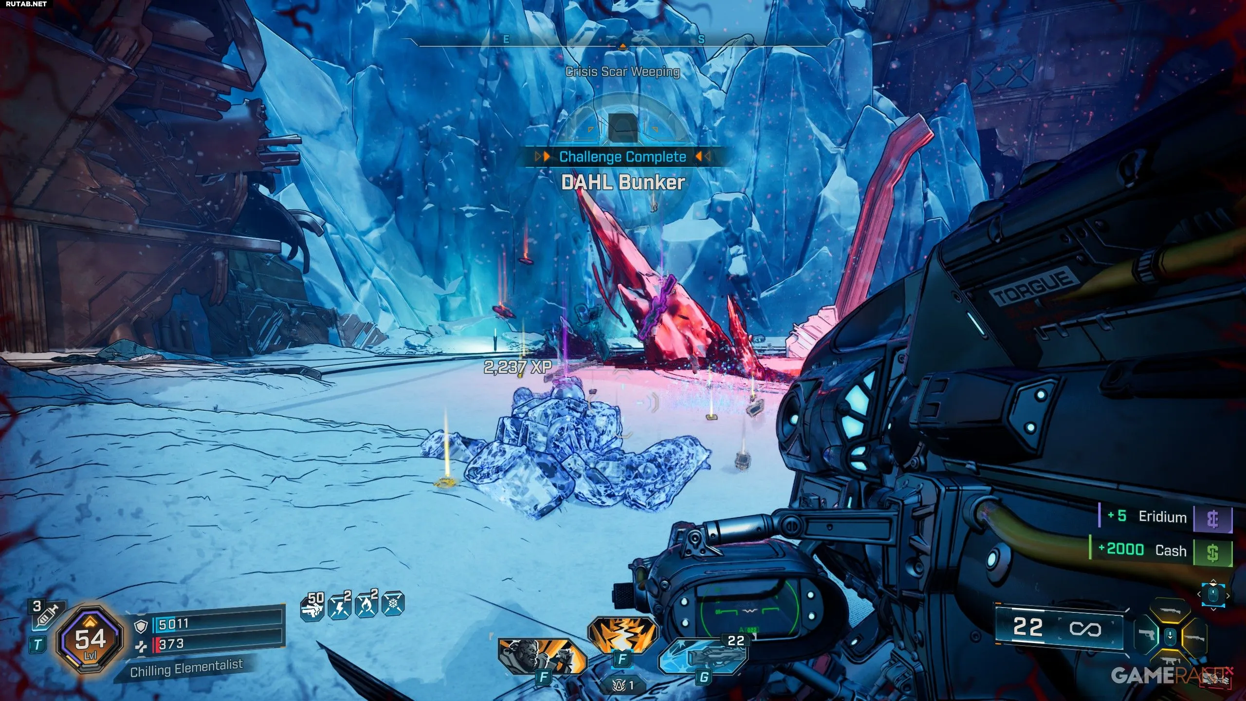В бою важно помнить о типах здоровья босса: первая полоса — щиты (эффективны шоковый и радиационный урон), а последняя — броня (желтая, уязвима к крио и коррозионному урону).