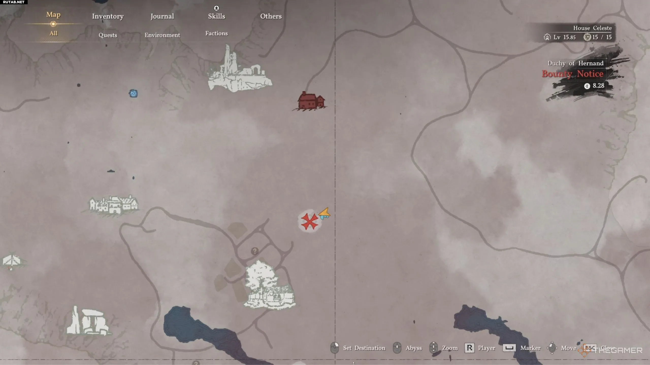 Продолжайте движение на восток, миновав надпись «Утёс Единорога» на карте, и вскоре увидите новый белый круг. Он отмечает местоположение монаха, который даёт это задание. Поговорите с ним, и вы сможете отправиться на поиски Мистического гриба.