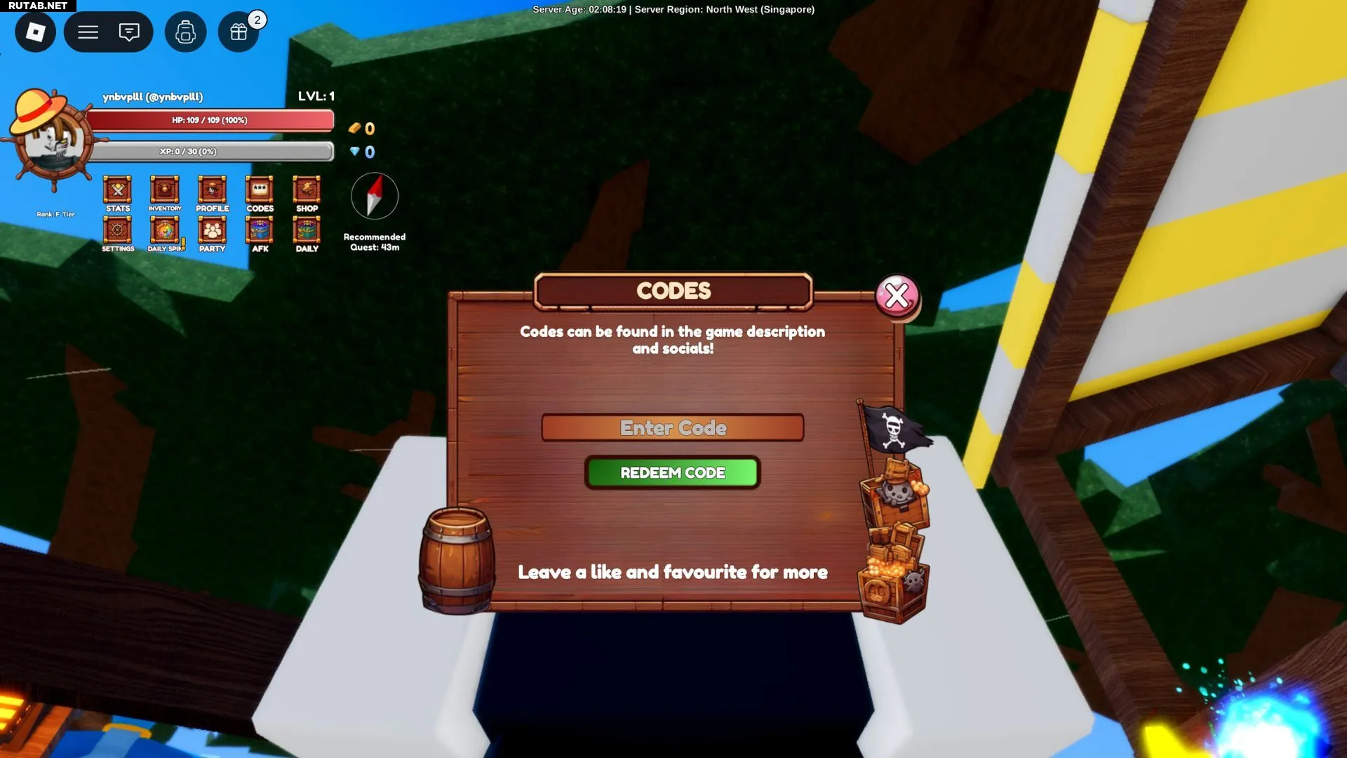 - Найдите кнопку «Codes» под полоской опыта.