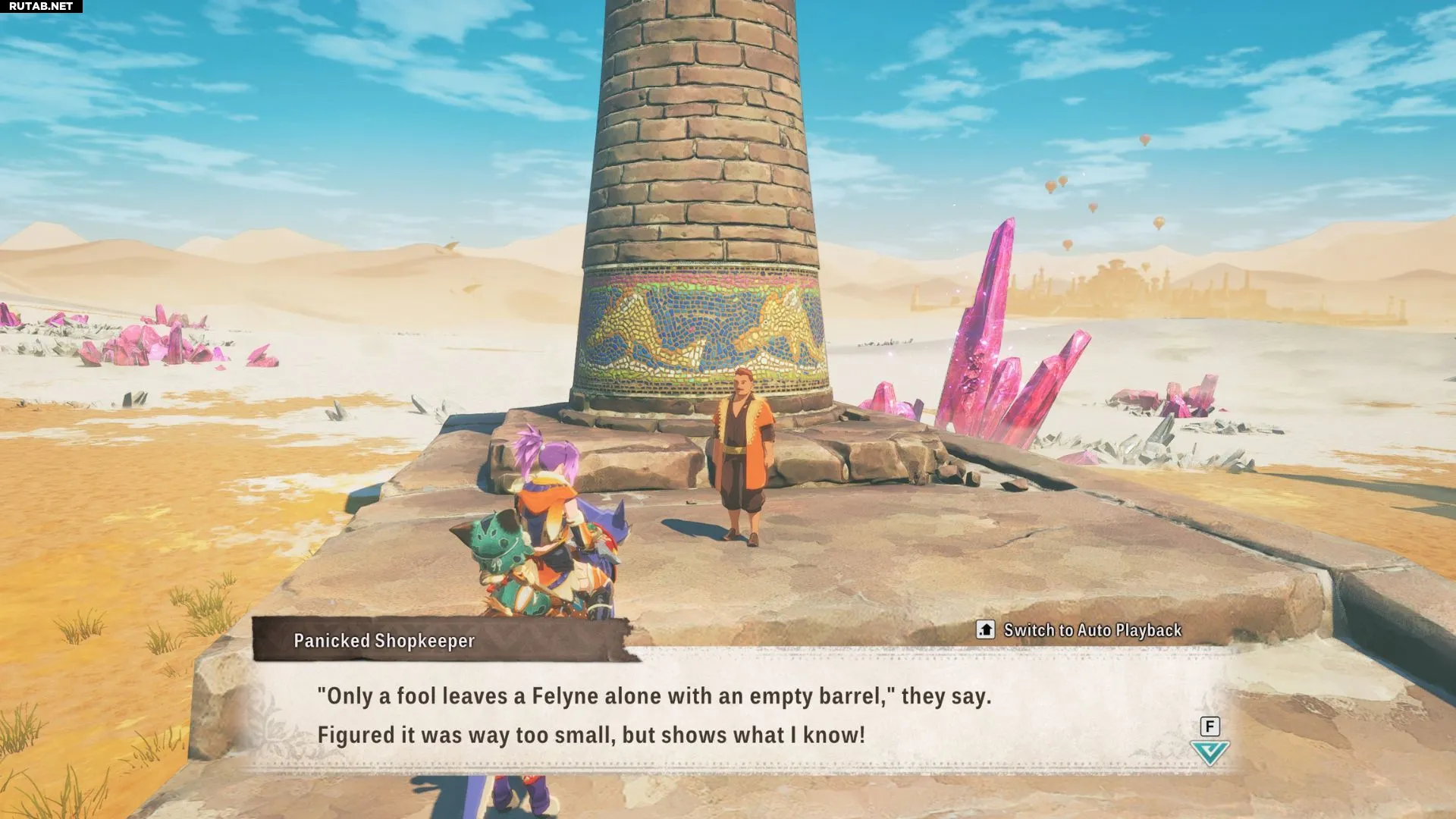 | The Path to Culinary Meowstery 2 | Complete The Path to Culinary Meowstery 1. Talk to the Felyne in the Bountiful Dunes' oasis while partnered with Eleanor. Travel to a campsite and cook Bubbling Magma Stew, then talk to the Felyne again. | |