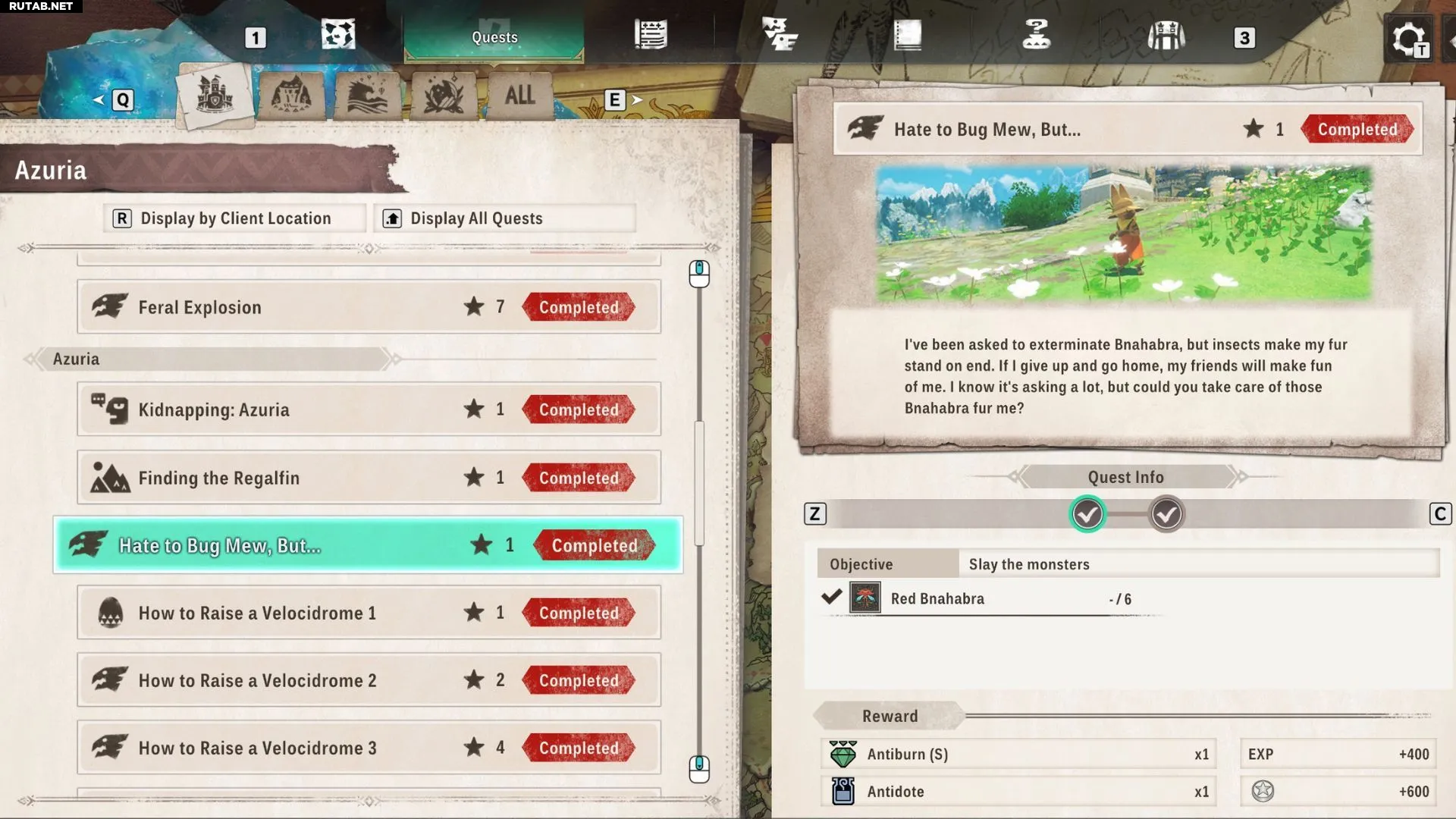 Все побочные задания и награды в Азурии в Monster Hunter Stories 3