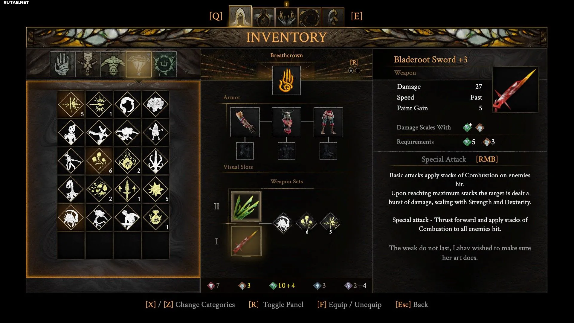 Скоростьопределяет, как быстро можно выполнять комбо или запускать снаряды. Чем выше скорость, тем лучше, но часто быстрое оружие наносит меньше урона, а медленное — больше и по большей площади. Универсальное оружие предлагает хороший баланс между уроном и скоростью.