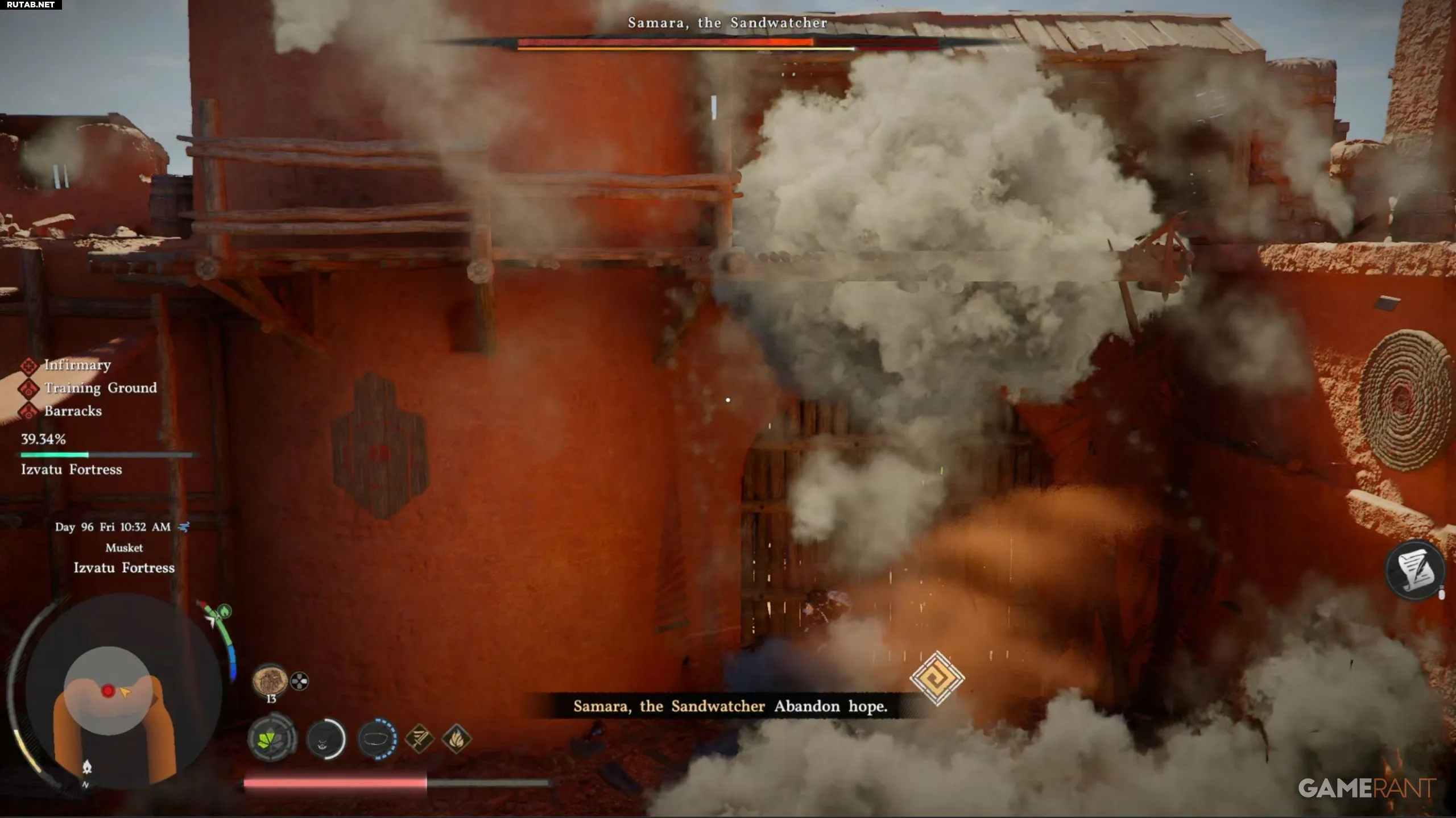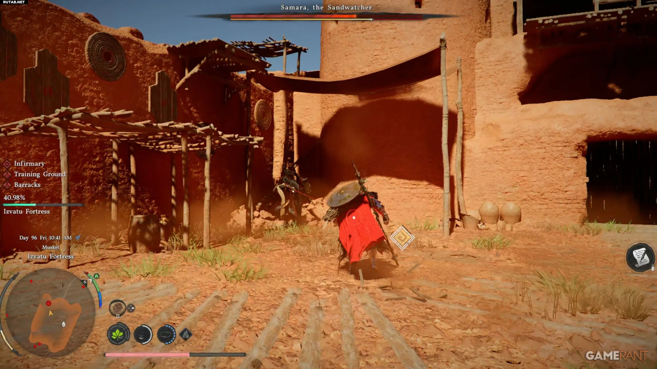 Квест «Сумеречные песни» в регионе Crimson Desert требует от игрока освободить крепость Извату и победить босса Самуру Стражницу Песков. Сражение с многочисленными стрелками и самим боссом, ведущим огонь взрывными зарядами с дистанции, может оказаться непростым испытанием.