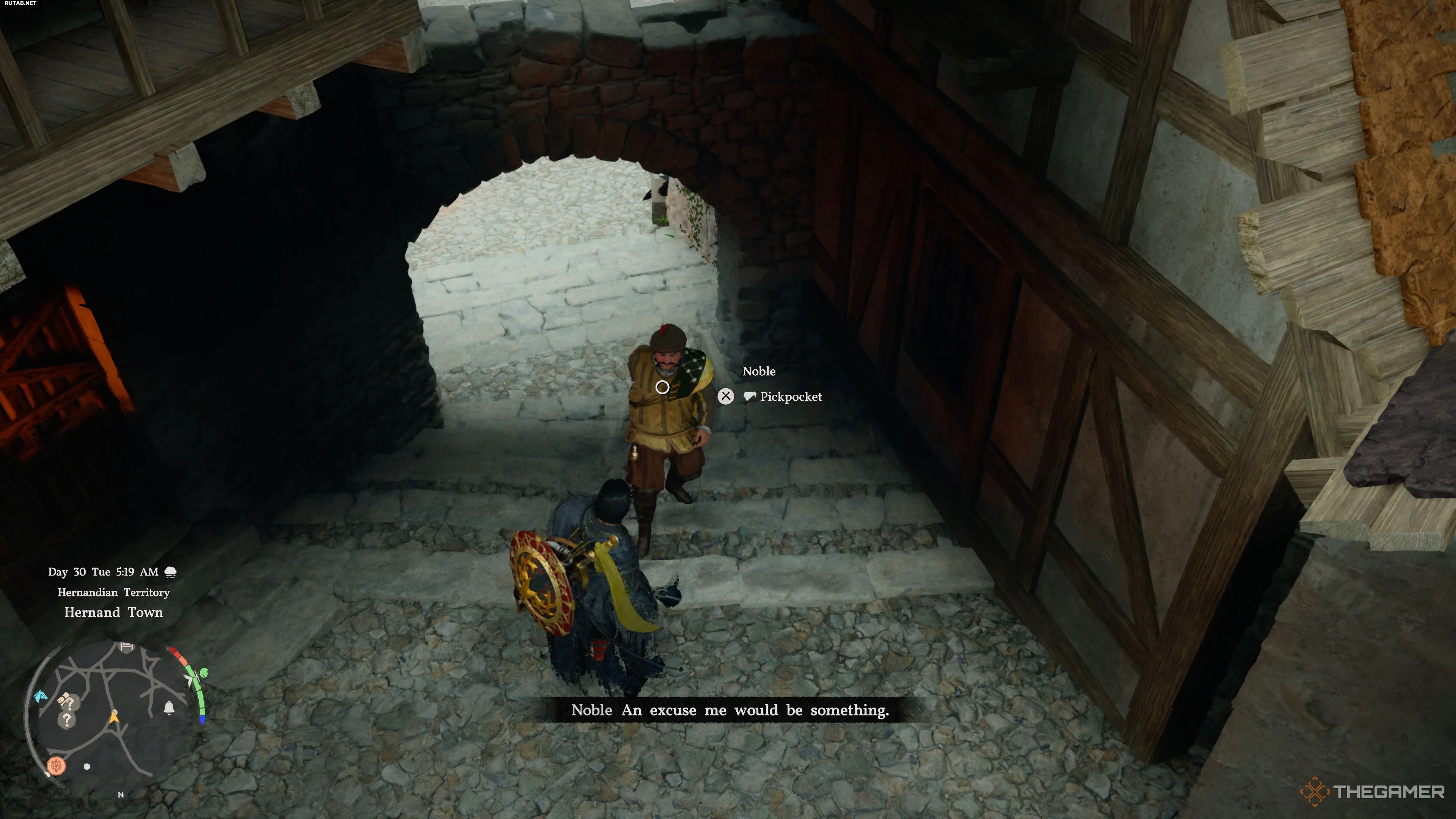 Направляйтесь в оживленные места, такие как Львиный Замок в Эрнанде, или любые места скопления дворян, чтобы найти наиболее подходящих кандидатов для кражи.