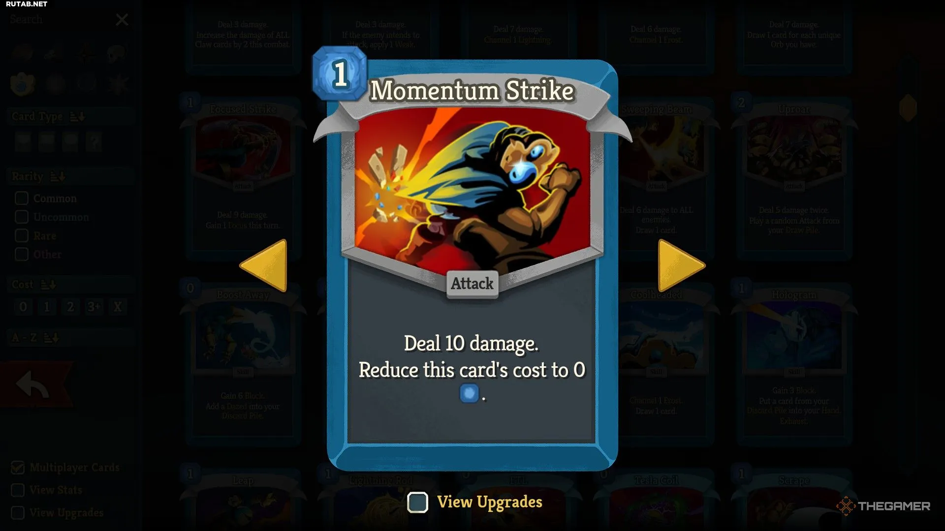- Удар импульса (Стоимость: 1) — Наносит 10 урона. Снижает стоимость этой карты до 0.