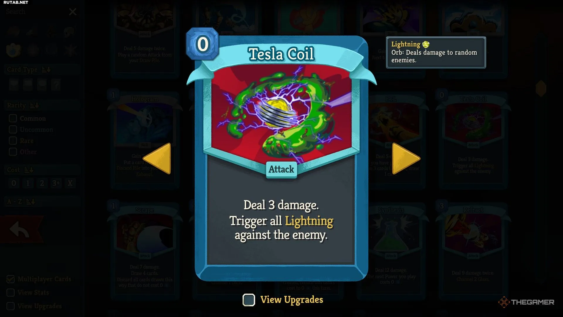 Катушка Теслы вступает в игру, когда у вас уже много Сфер Молнии. Она позволяет направить урон от всех ваших Сфер Молнии в одного выбранного врага. Если у вас есть Конденсатор и любая карта, добавляющая Фокус (увеличивает количество ваших Сфер), вы нанесёте этому врагу колоссальный урон.