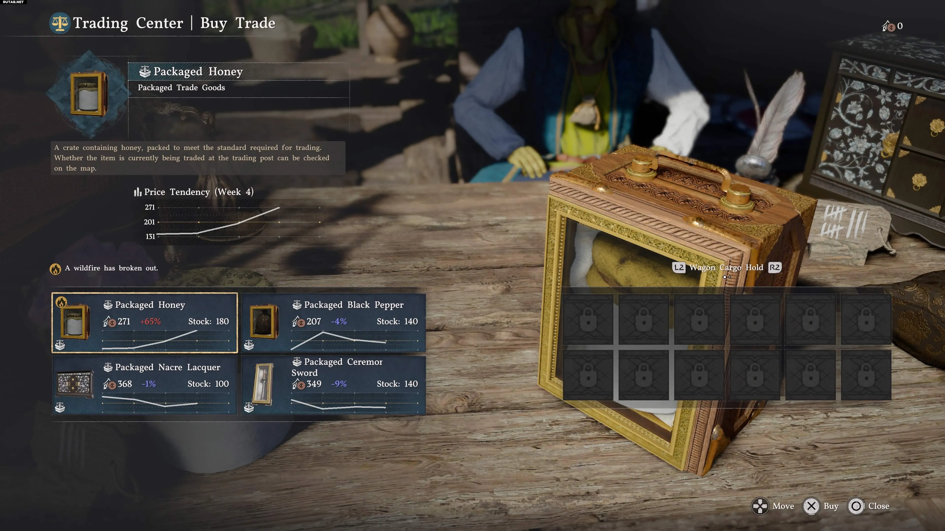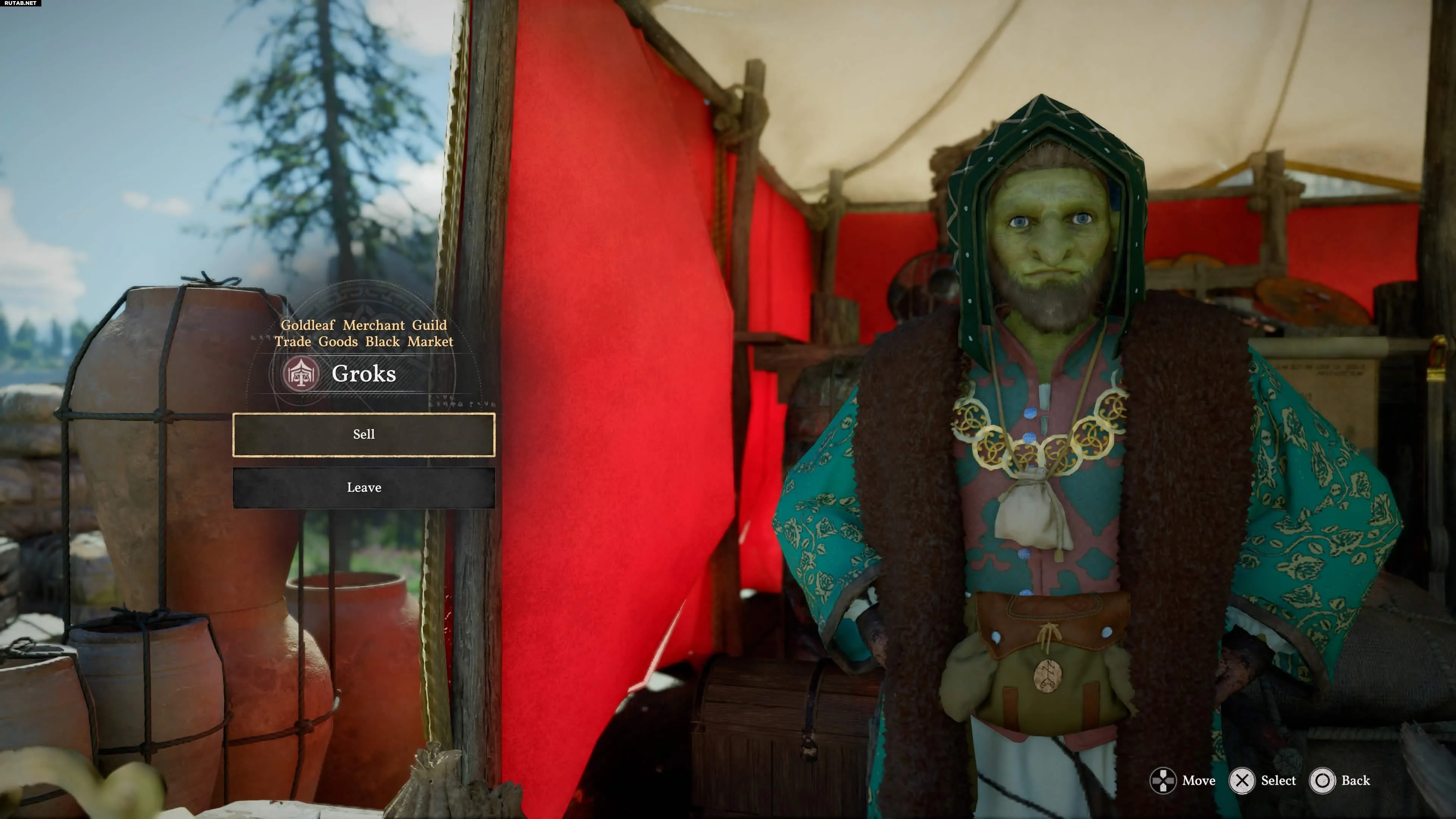 Во время игры вы можете находить предметы с синим фоном — это так называемые «торговые товары». В исходном виде они считаются «неупакованными» и могут быть проданы торговцам по всему миру, например, в торговом посту «Голдлиф» к северо-востоку от Лагеря Серошерых, за рекой.
