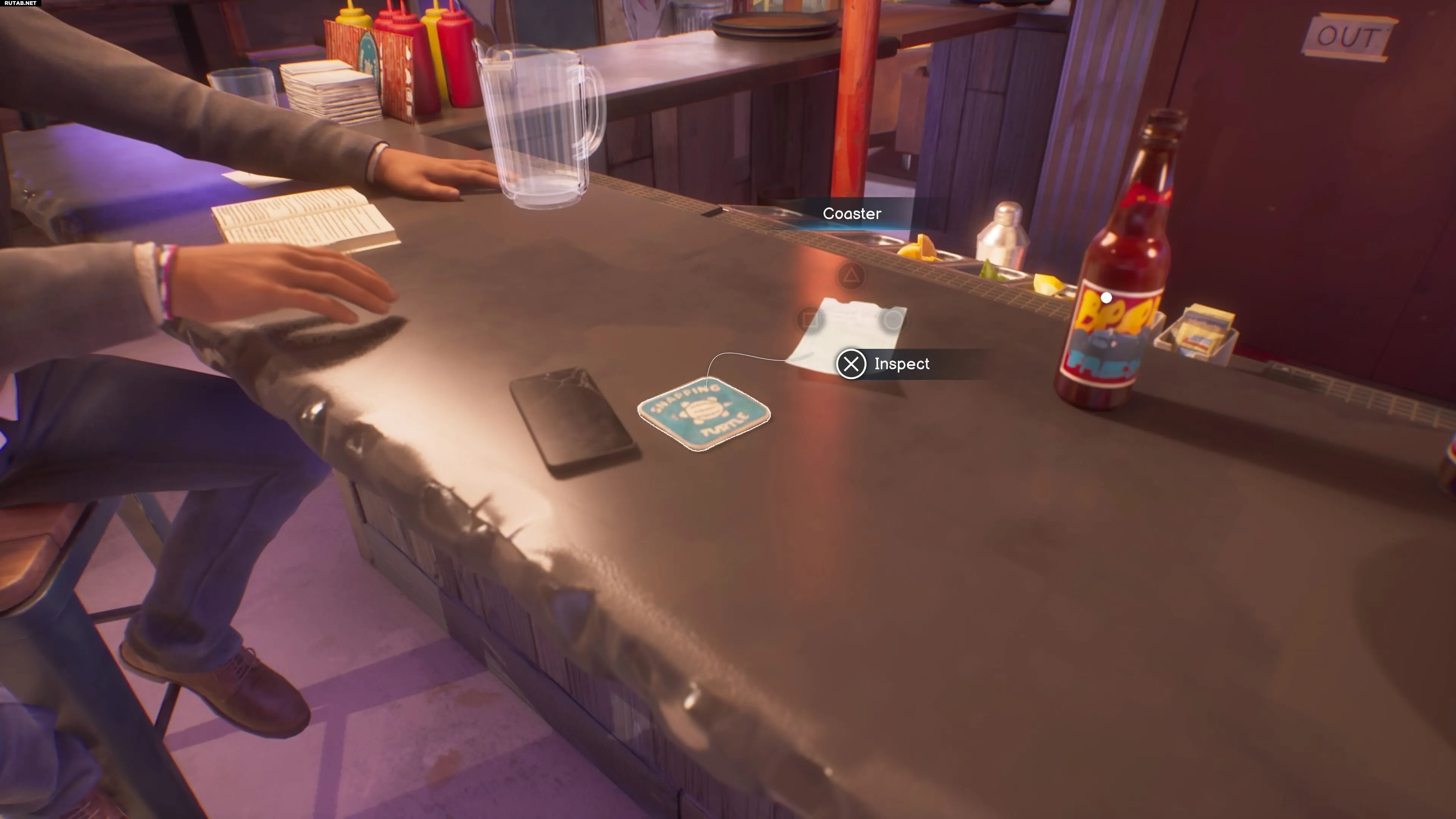 Где найти: Сидя за стойкой бара, поговорите с Лукасом и Амандой. Осмотрите подстаканник рядом с Лукасом и переверните его.