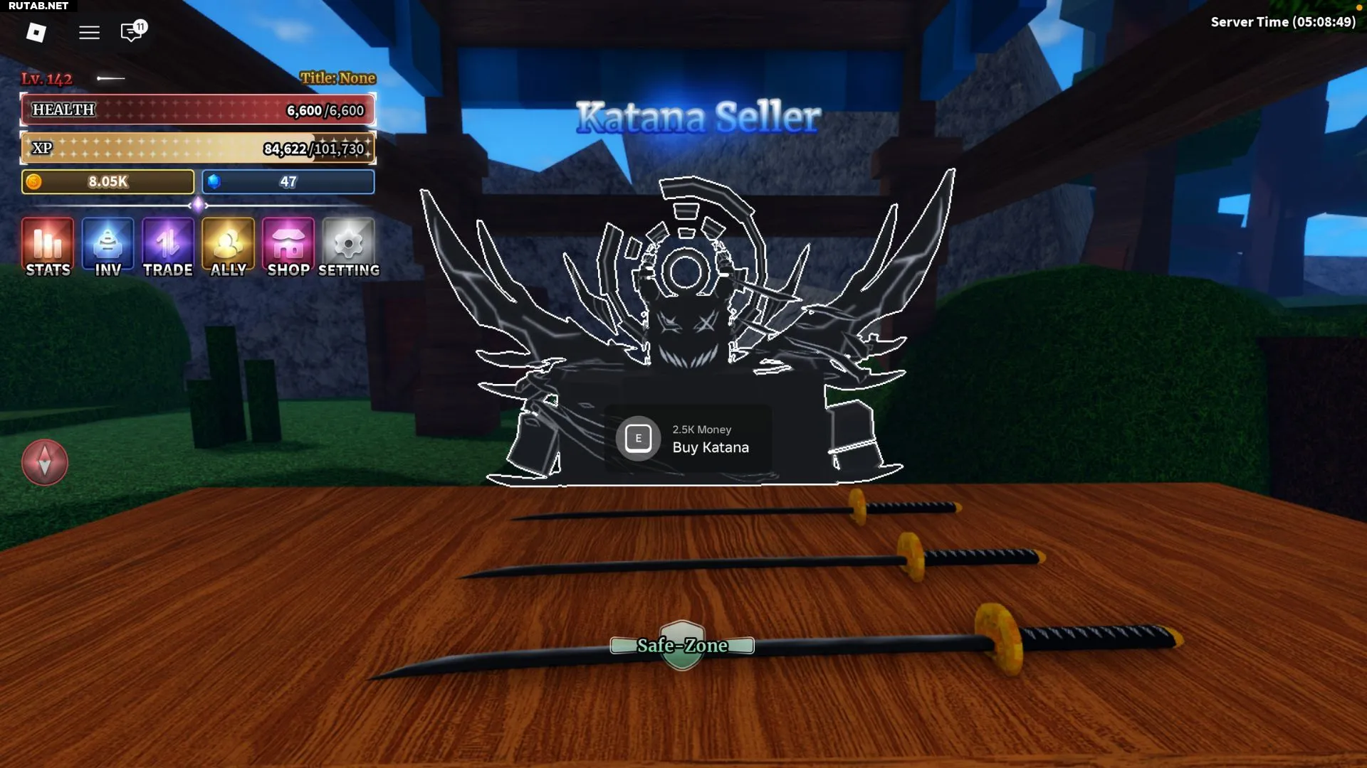 - Начните с покупки катаны у продавца на первом острове. Она дешевая и идеально подходит для обучения основам боя.