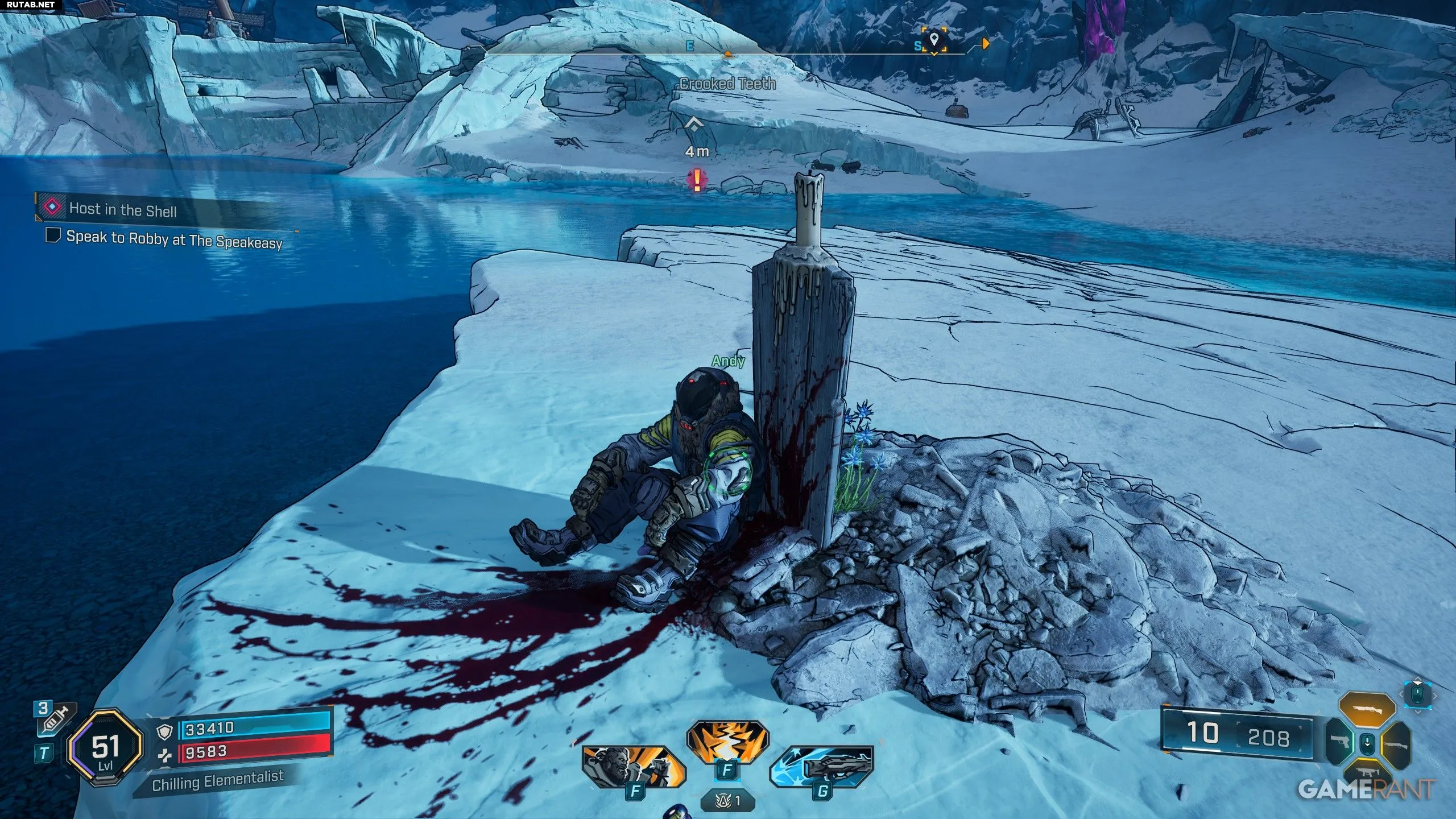 - Эту побочную миссию можно начать, направившись на запад от «Гаража Элли», который находится в центре карты «Шепчущего ледника».