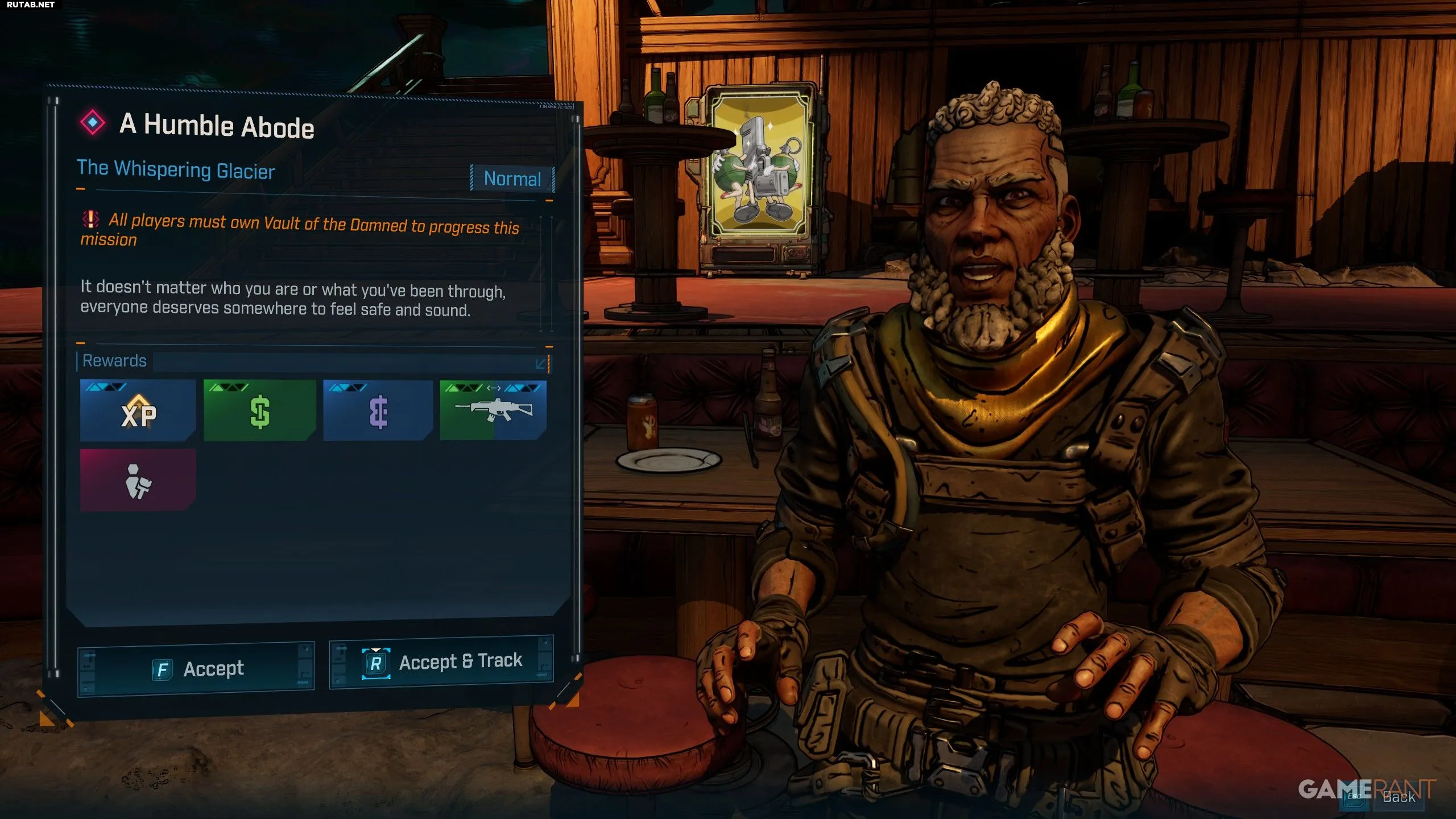 - В центре «Подпольного бара» поговорите с Робби, чтобы начать квест.