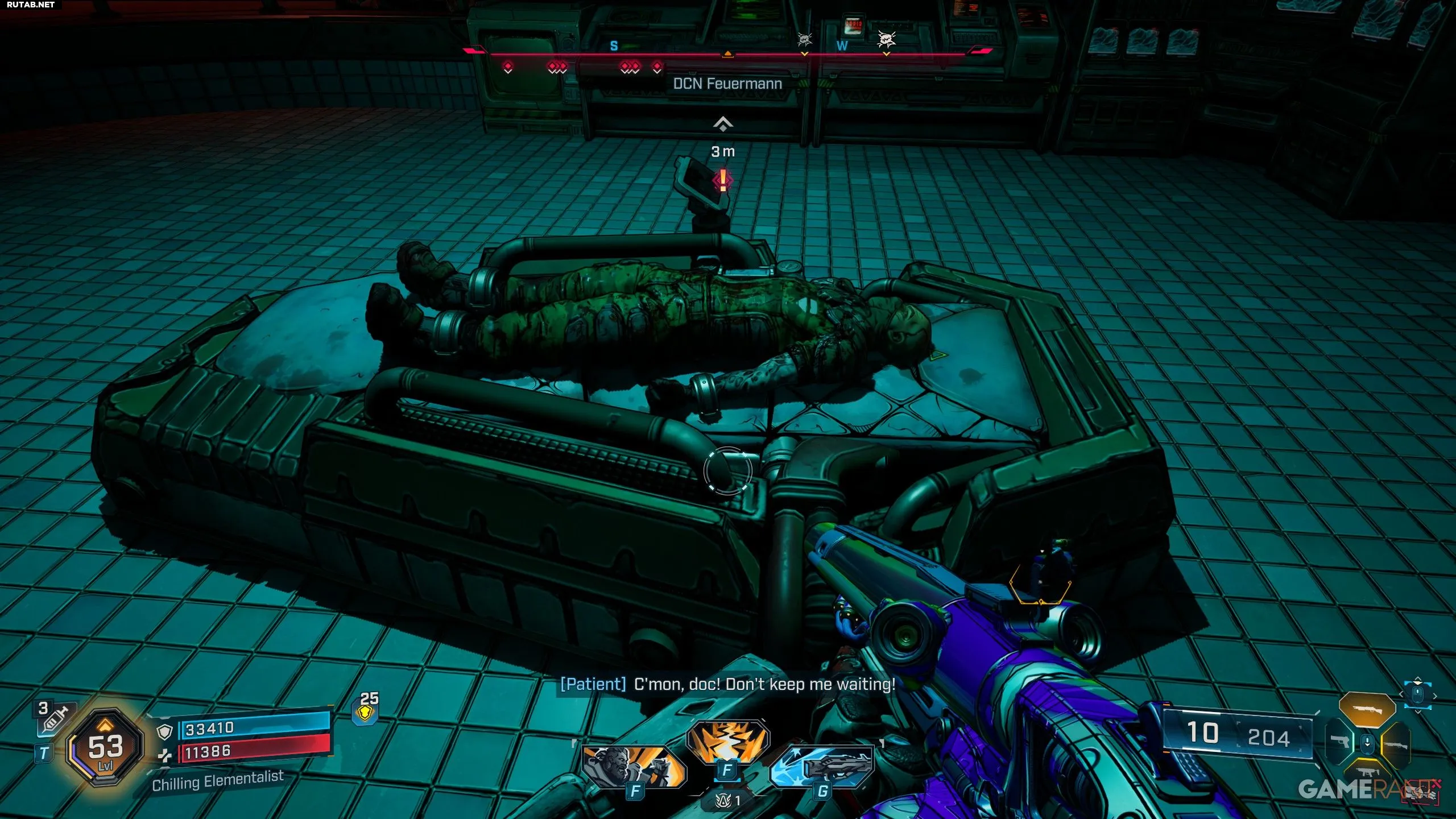 - Чтобы добраться до этой побочной миссии, используйте быстрое перемещение на «DCN Feuermann» и пройдите к лифту. Оттуда следуйте по коридорам, чтобы найти медблок, где NPC застрял на операционном столе.